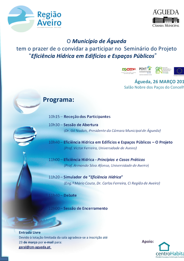 Seminário "Eficiência Hídrica em Edifícios e Espaços Públicos" [Org.: CIRA / Câmara Municipal de Águeda]