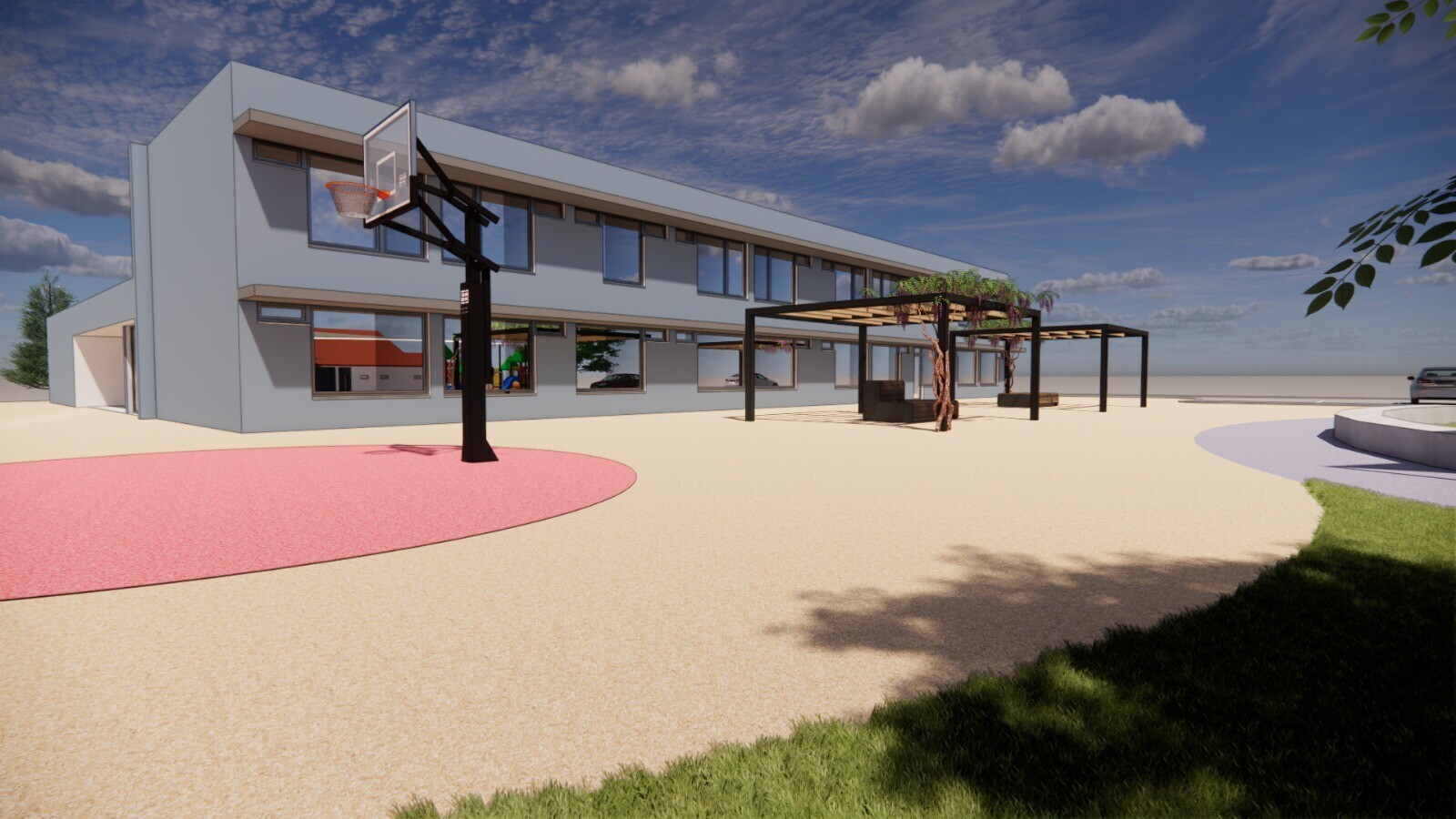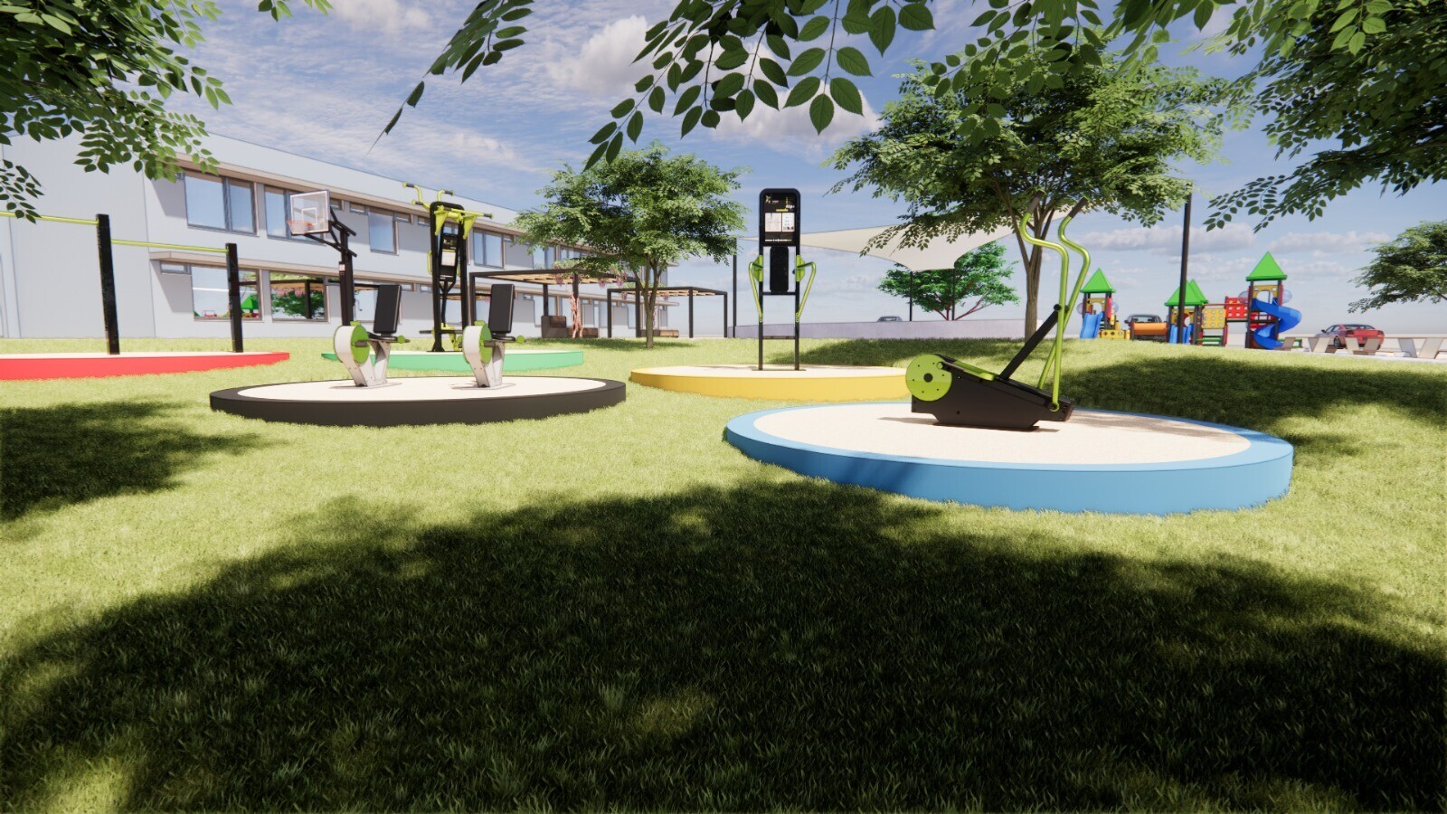 Nos espaços exteriores está prevista uma reformulação completa, com a criação de zonas verdes, parque infantil, anfiteatro ao ar livre, equipamentos de ginásio exterior, áreas de convívio, tabela de basquetebol, circuitos pedonais e novas áreas de estacionamento, promovendo a sua utilização por pessoas de todas as faixas etárias e reforçando, simultaneamente, a segurança pública. A obra inclui ainda a reorganização dos arruamentos envolventes, com novos passeios e soluções de acalmia de tráfego.