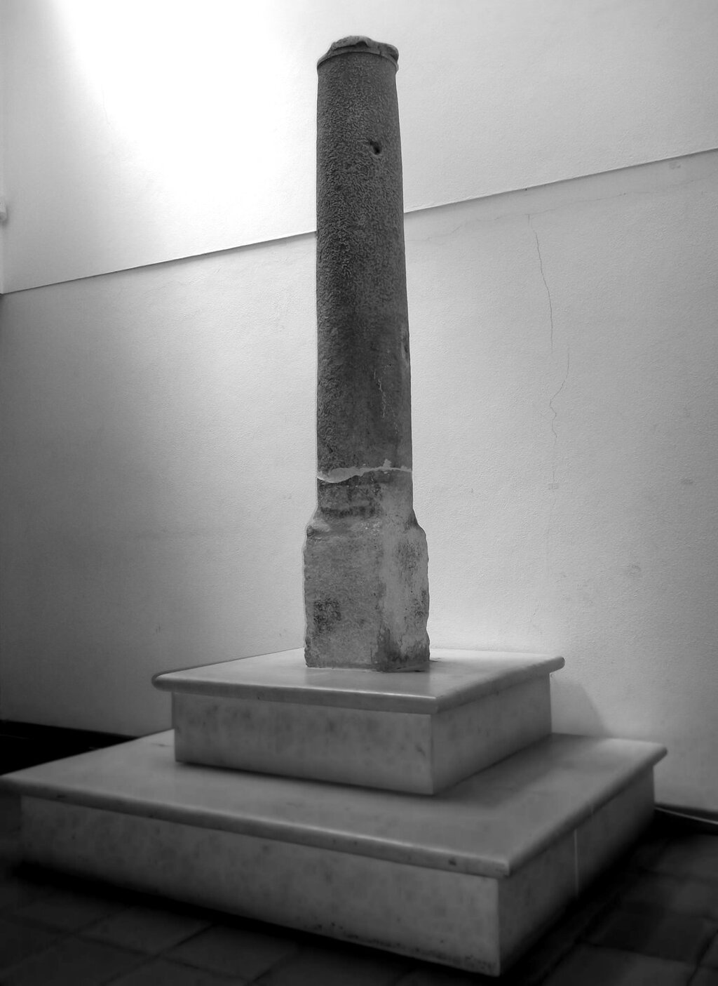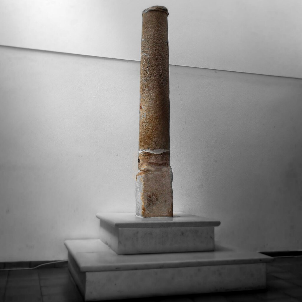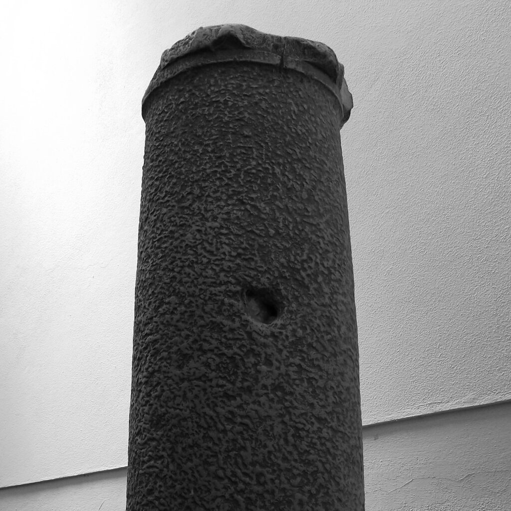 Descrição: Resume-se a um soco cravado no solo, junto e ao lado direito de um fontanário público, e a um fuste cilíndrico com cerca de 2 m, solto, que se encontra na Junta de Freguesia.