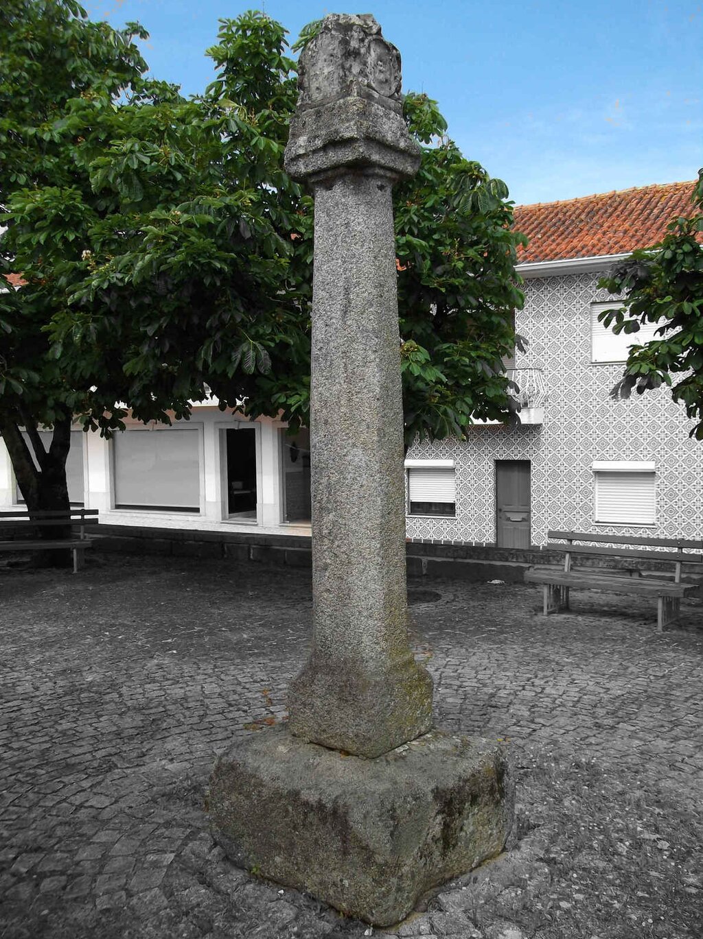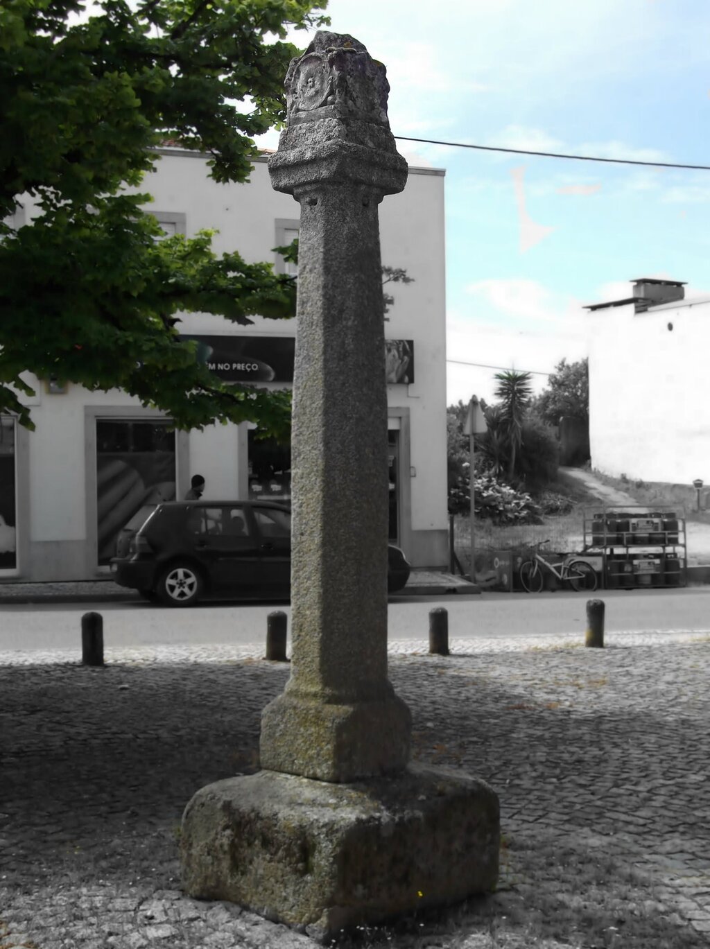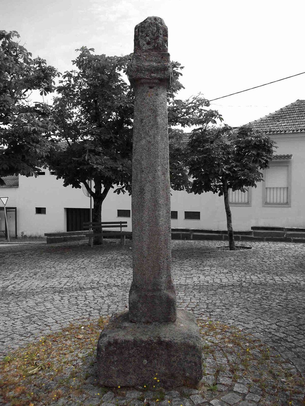 Tipologia: Arquitetura civil pública, manuelina. Pelourinho manuelino de Pinha piramidal.