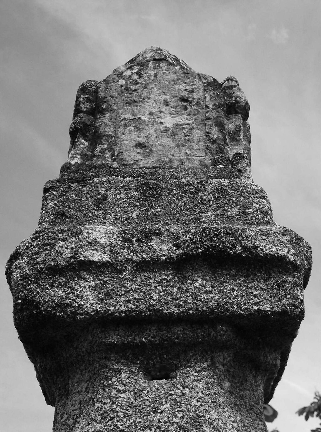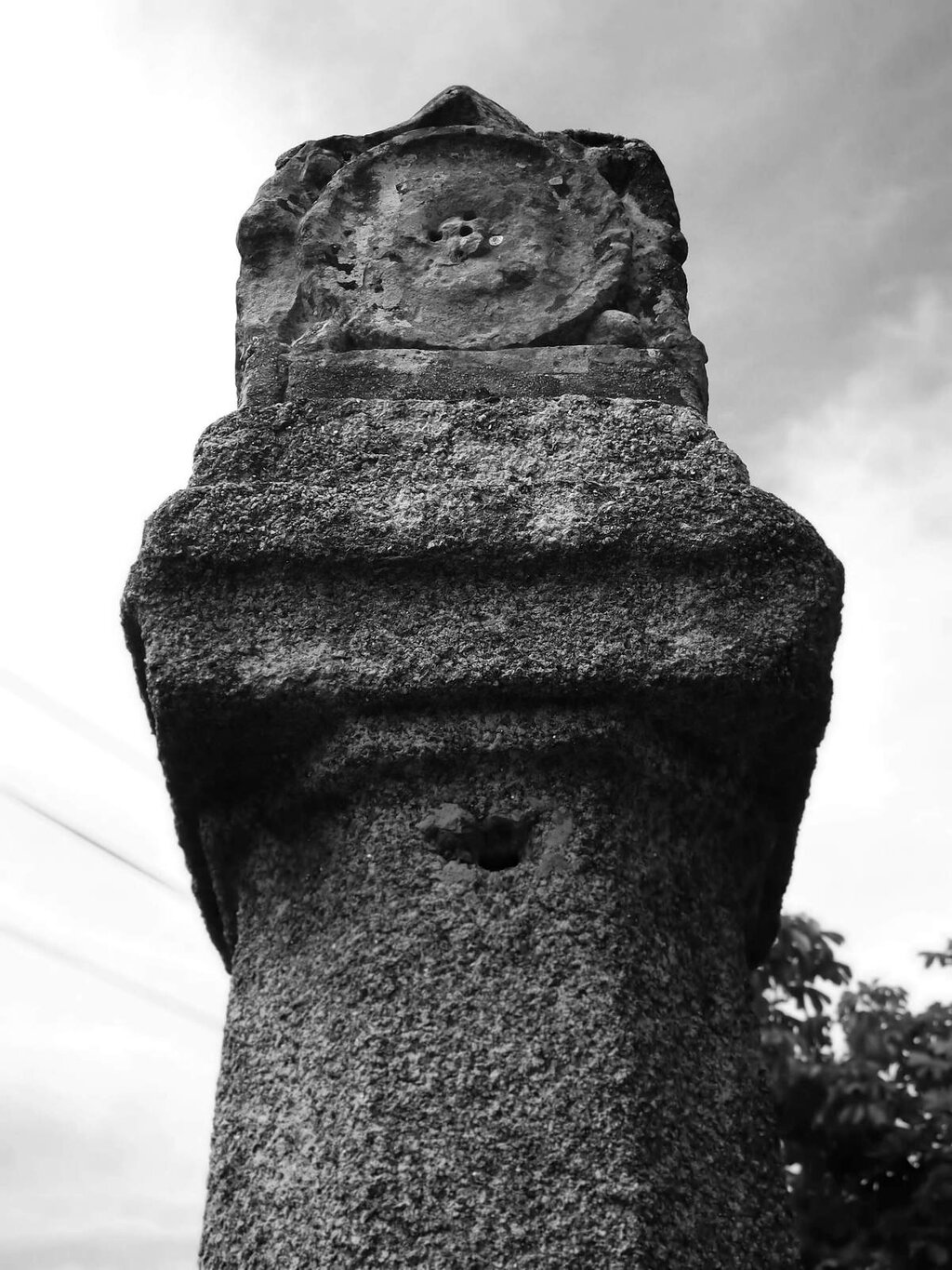 Descrição: Soco quadrangular que suporta a base, também quadrangular, coluna de fuste oitavado ligeiramente irregular e remate constituído por pseudo-capitel e estrutura paralelepipédica com rosácea e escudo nacional, sendo já indecifráveis as outras duas faces.