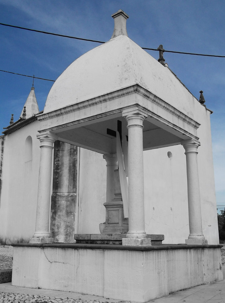 Descrição: Planta quadrangular. Soco quadrangular elevado com marcações nos ângulos em pedestais e acesso único por escadaria de três degraus. Templete sustido por quatro colunas toscanas de base simples com estilóbata, fuste liso e capitel marcado por gola, entablamento desenvolvido de molduras simplificadas e friso corrido e cobertura cónica ligeiramente abaulada em arestas vivas e coroada por pináculo de remate triangular. Cruzeiro interior erguido sobre degrau escavado, pedestal quadrangular com faces molduradas, base e fuste interrompido onde se crava crucifixo desproporcionado.