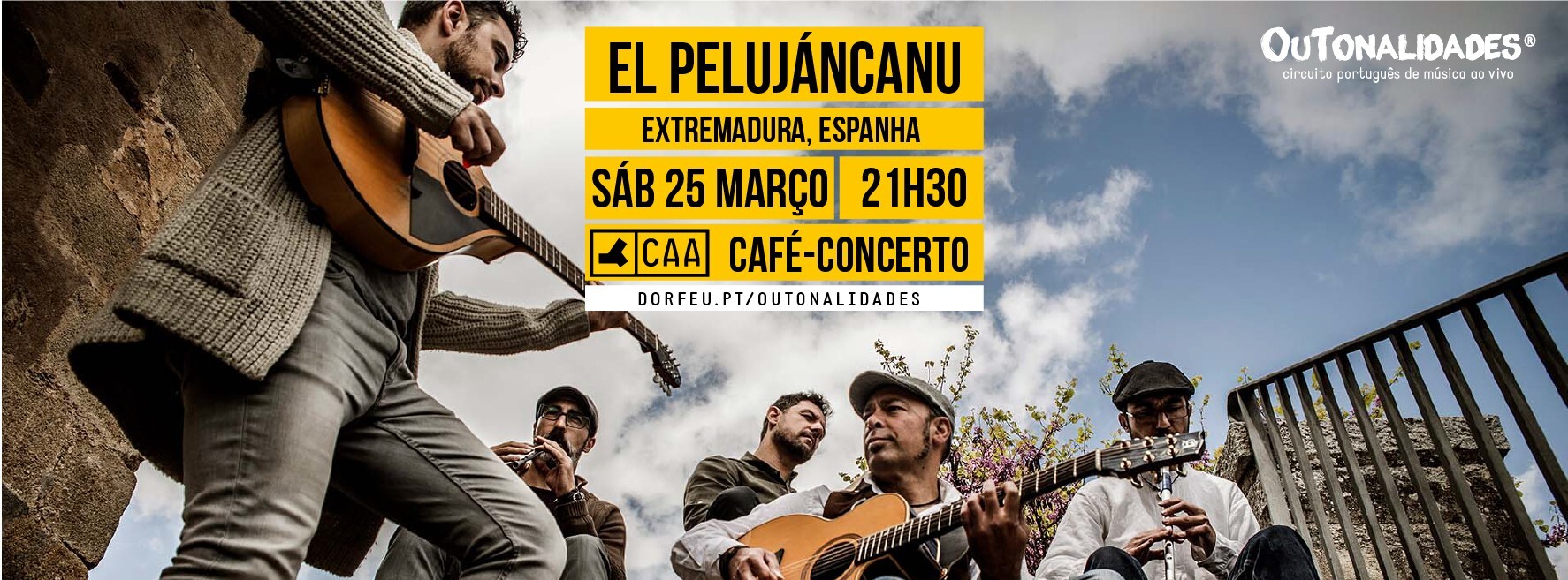 O OuTonalidades - circuito português de música ao vivo instala-se no café-concerto do CAA - Centro de Artes de Águeda para uma noite de folk estremenho, com El Pelujáncanu. Nascido da profunda preocupação de quatro amigos e músicos em preservar e divulgar o seu folclore mais ancestral, El Pelujáncanu recupera as diferentes formas musicais que sobreviveram até hoje. Melodias de flauta e tambor, canções de festas e tradições antigas, etc.