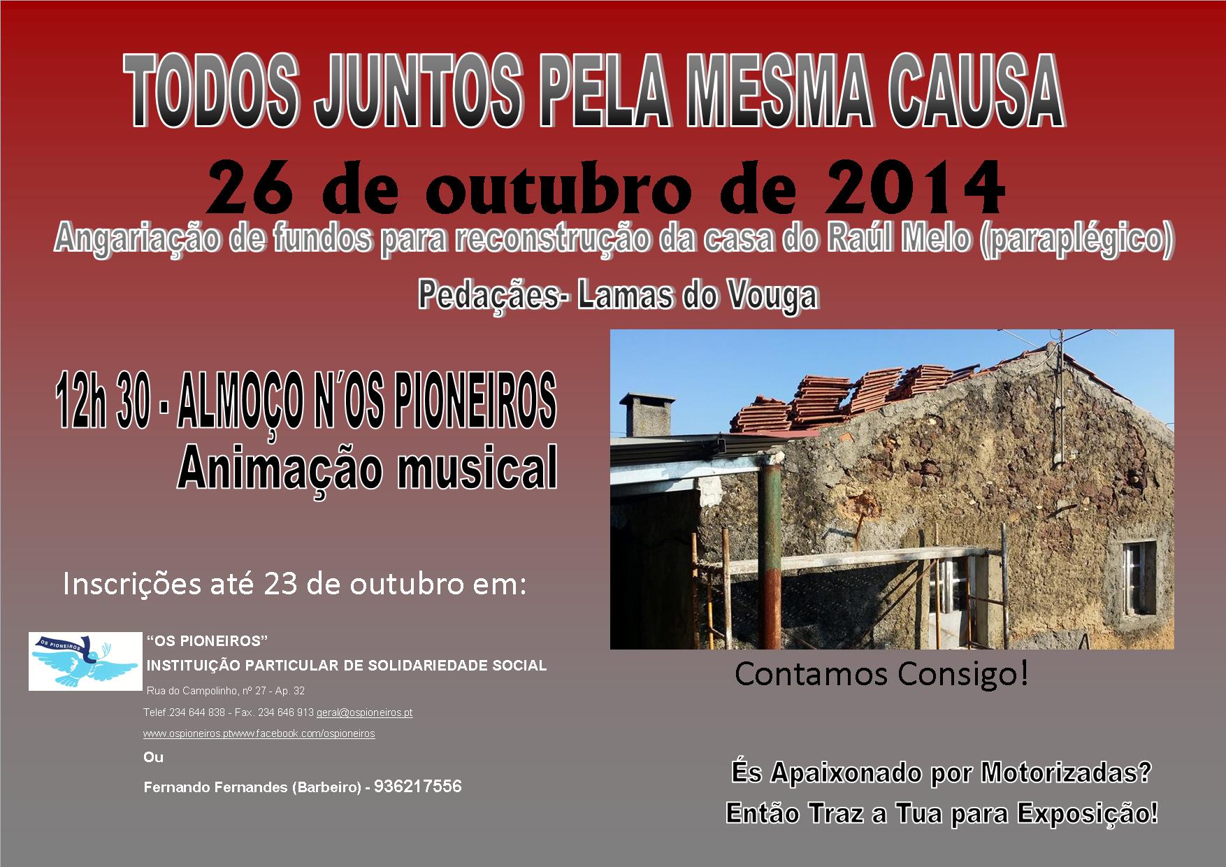 E foi com este propósito que dois cidadãos desta União de freguesias, Fernando Fernandes “O Barbeiro” e Fernando Ferreira, por sua iniciativa juntaram-se à Instituição encontrando-se a organizar um almoço de angariação de fundos para a casa do Raúl, para o próximo dia 26 de outubro de 2014.