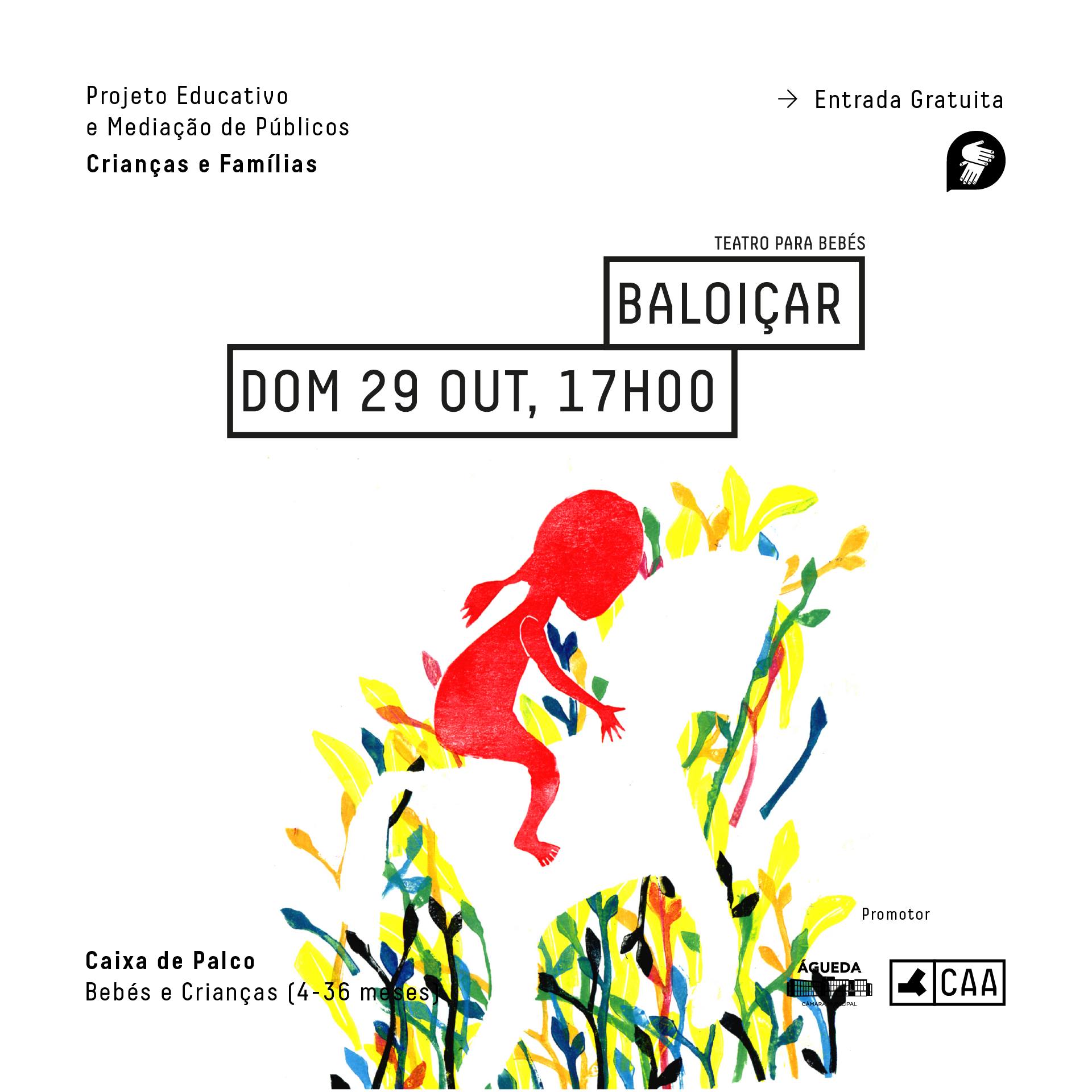 "Baloiçar" é um teatro para bebés, dos 4 aos 36 meses, com entrada gratuita, que decorrerá na Caixa de Palco do Centro de Artes de Águeda, no dia 29 de outubro, às 17h.