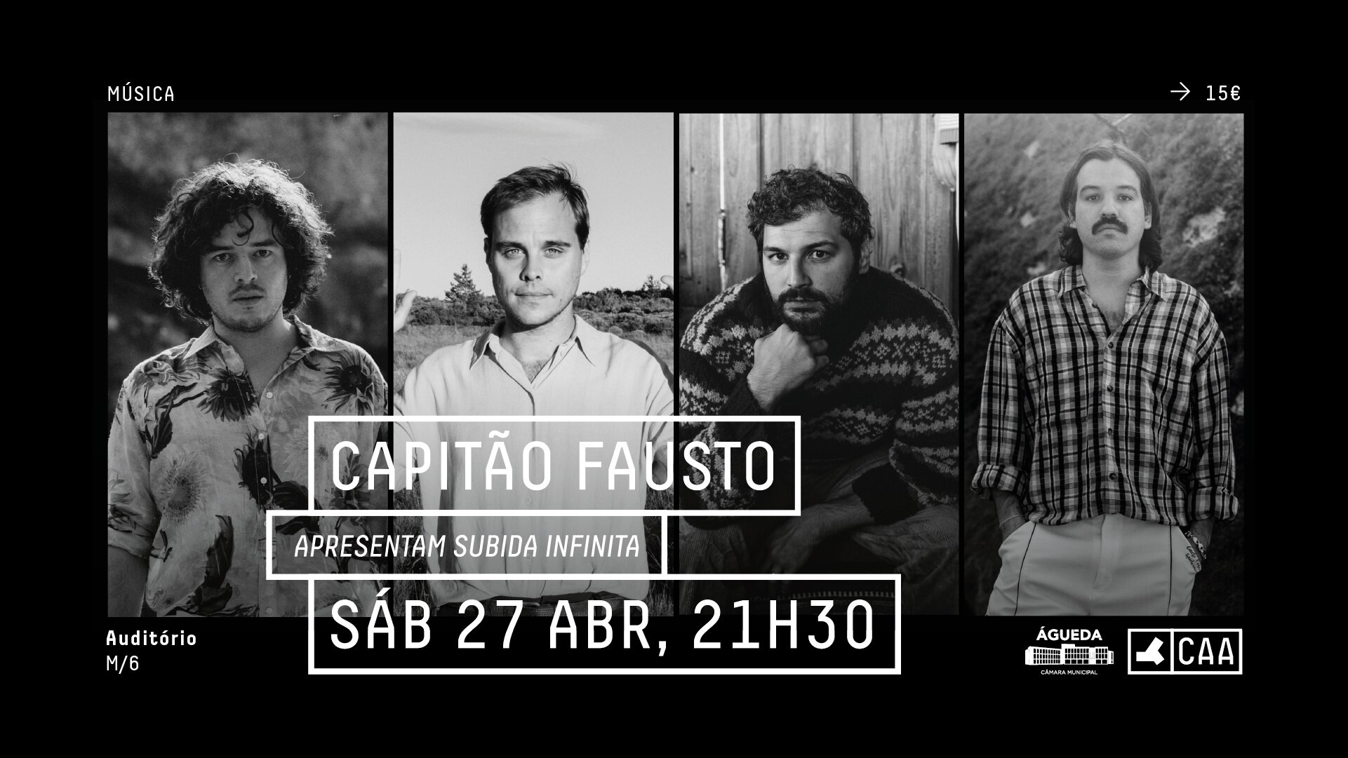 Bilhetes disponíveis em: https://ticketline.sapo.pt/evento/capitao-fausto-apresentamsubida-infinita-81611/sessao/104562_2650_1714249800