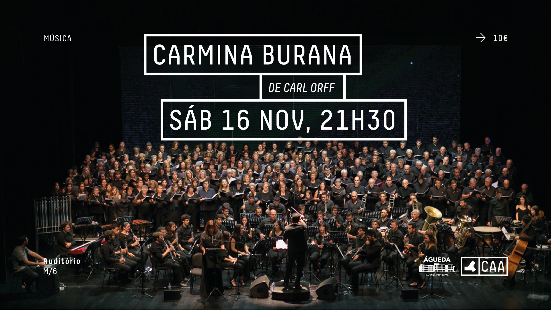 Carmina Burana, uma coleção de poemas do século XIII, inspirou Carl Orff a criar a cantata cénica de nome homónimo, que teve a sua estreia em 1937, na cidade de Frankfurt. A obra celebrizou-se a nível mundial, tornando-se um momento raro de encantamento representativo do século XX. No espetáculo, que terá lugar no Centro de Artes de Águeda, estarão em palco cerca de 200 músicos e coralistas pelo Diretor Artístico da Orquestra Filarmonia das Beiras, o Maestro Jan Wierzba. Mundialmente reconhecida como uma obra intemporal e de grande envergadura, os poemas musicados pelo compositor alemão Carl Orff continuam a garantir plateias esgotadas e audiências maravilhadas. Aos três solistas e à Orquestra Filarmonia das Beiras juntar-se-ão os seguintes intervenientes: Orquestra Filarmonia das Beiras, União de Bandas de Águeda, Coro do Departamento de Comunicação e Arte da Universidade de Aveiro, Coro Infantil Allegrus II do Conservatório de Música de Águeda, Orfeão de Águeda e Coro da Associação Cultural de Recardães.