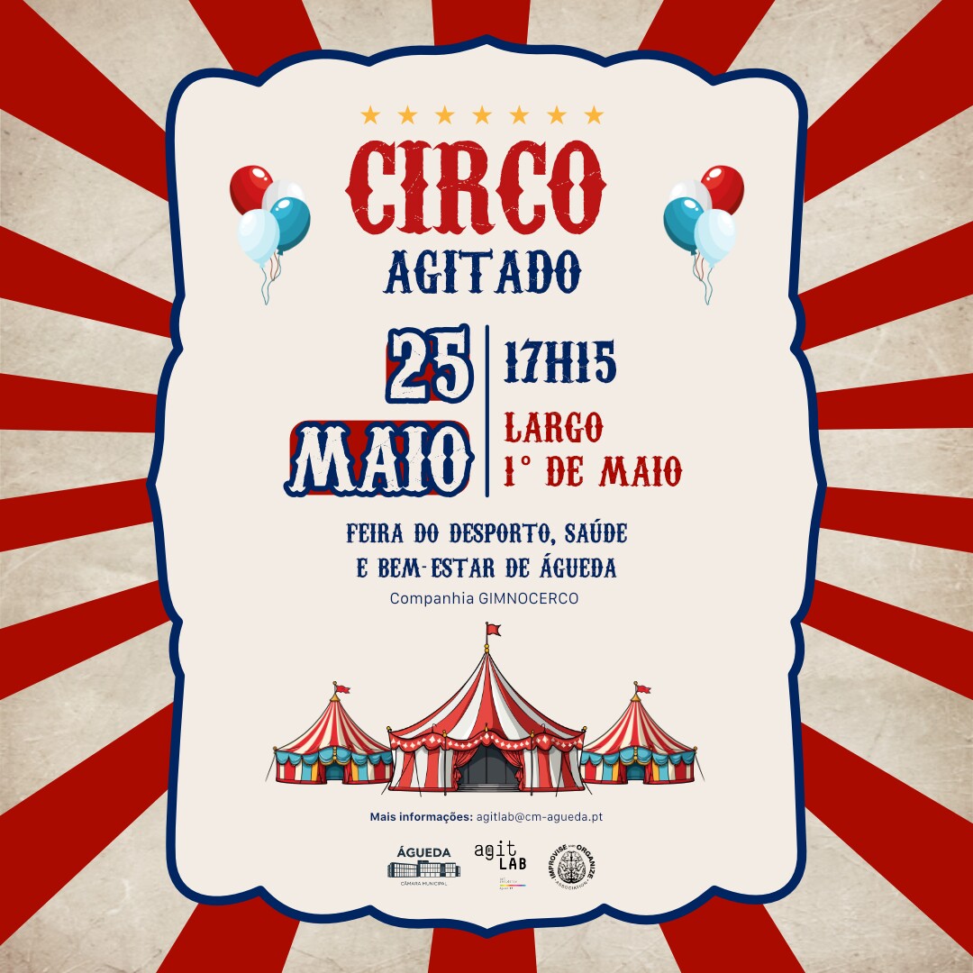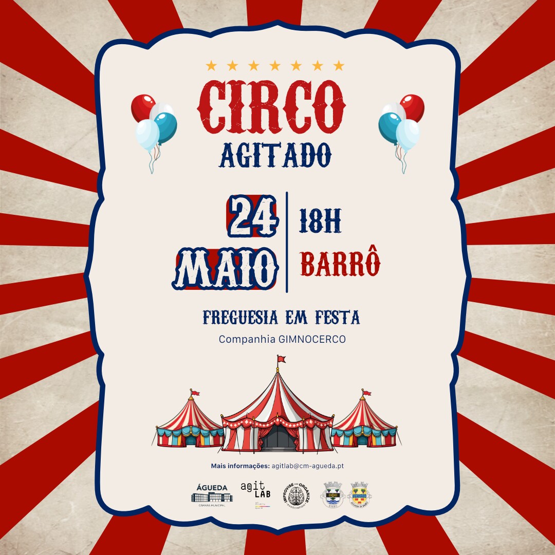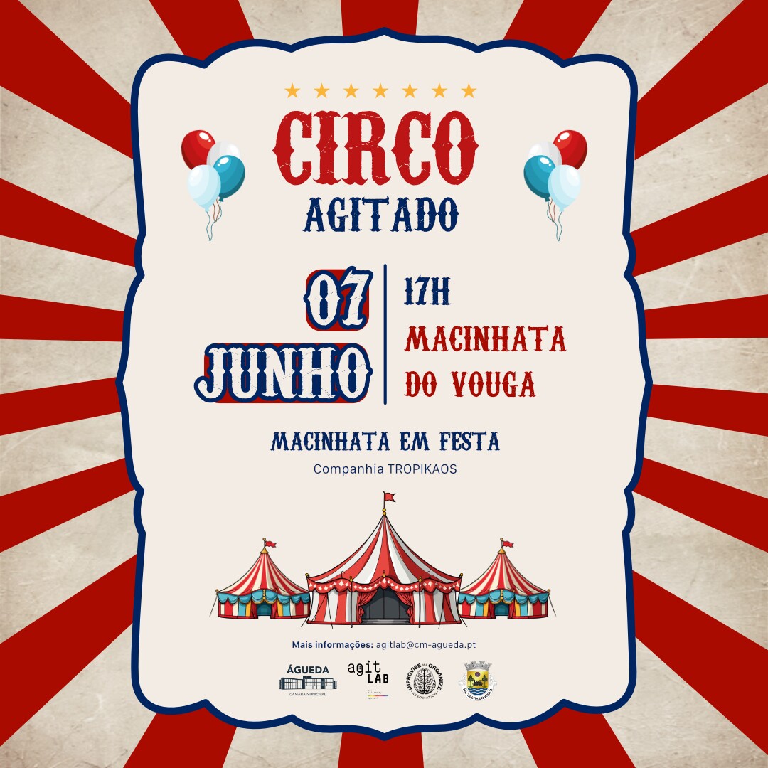 A Câmara Municipal de Águeda promove, entre 24 de maio e 8 de junho, mais uma edição do CircoAGITado, uma iniciativa dedicada às artes perfomativas, com especial enfoque no circo contemporâneo. Promovido no âmbito do AGITLab, inclui apresentações em duas freguesias do concelho e terminará com um espetáculo no Parque Municipal de Alta Vila, no âmbito do Feriado Municipal.