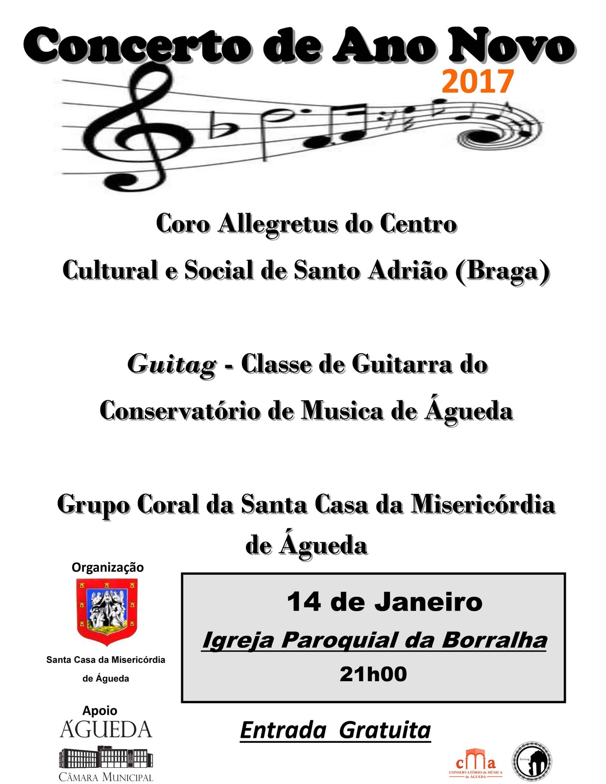 A Santa Casa da Misericórdia de Águeda vai realizar o Concerto de Ano Novo, no dia 14 de janeiro de 2017, pelas 21:00h, na Igreja Paroquial da Borralha.