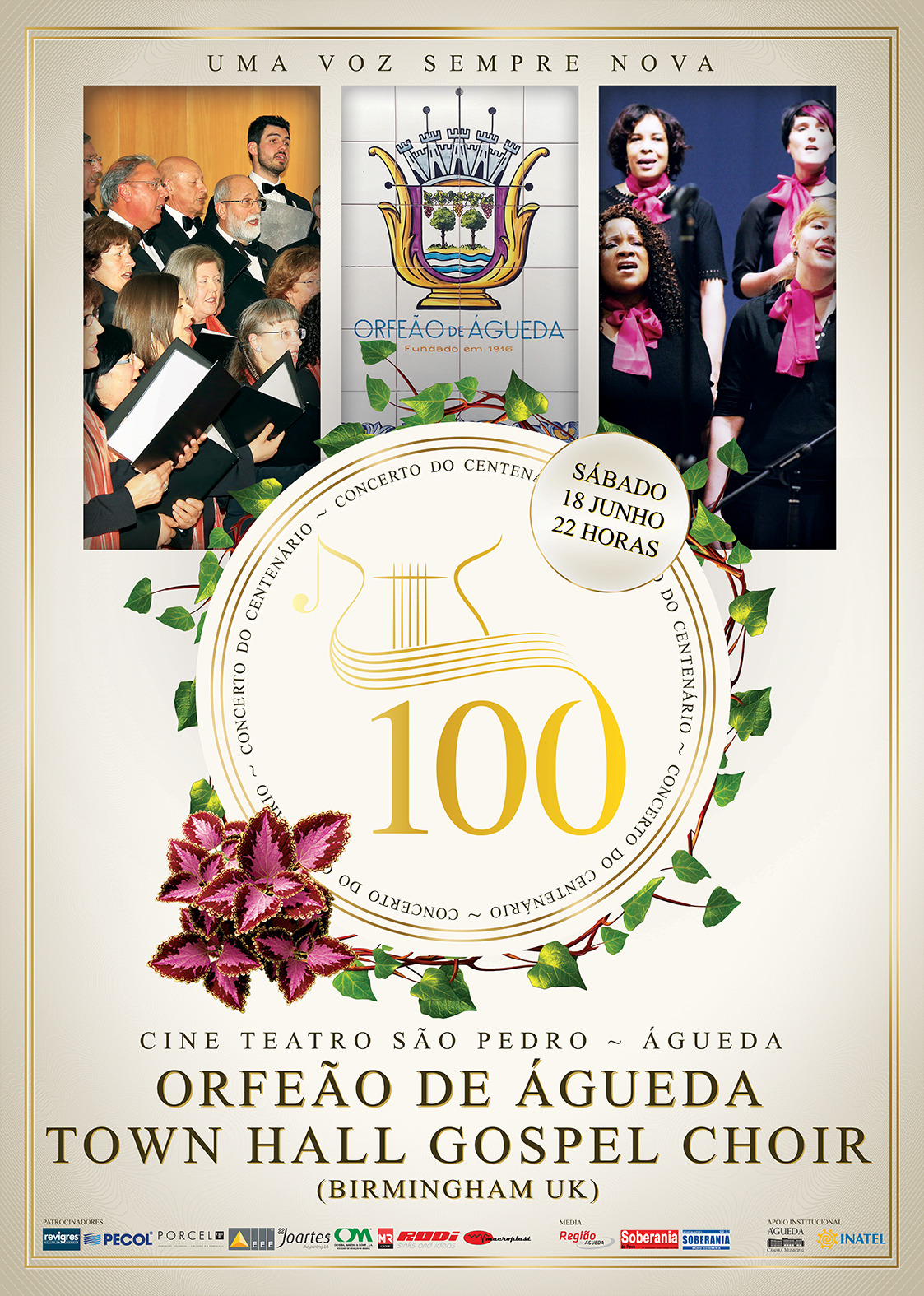 A Direcção do Orfeão de Águeda tem a honra de convidar V. Exa. a assistir ao concerto comemorativo dos 100 anos do Orfeão de Águeda, que terá lugar no próximo dia 18 de Junho, Sábado, pelas 22 horas, no Cine-teatro S.Pedro, conforme cartaz que enviamos em anexo.