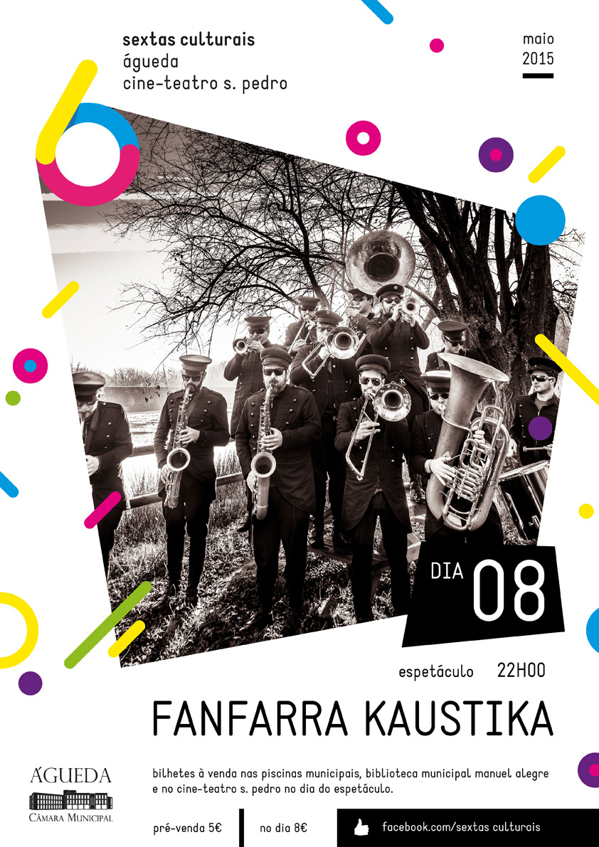 A Câmara Municipal de Águeda anuncia que o último concerto da temporada de 2014/2015 das Sextas Culturais, a realizar no dia 8 de maio, às 22 horas, será preenchido pela Fanfarra Kaustika, que apresenta no cine-teatro S. Pedro o seu novo CD.