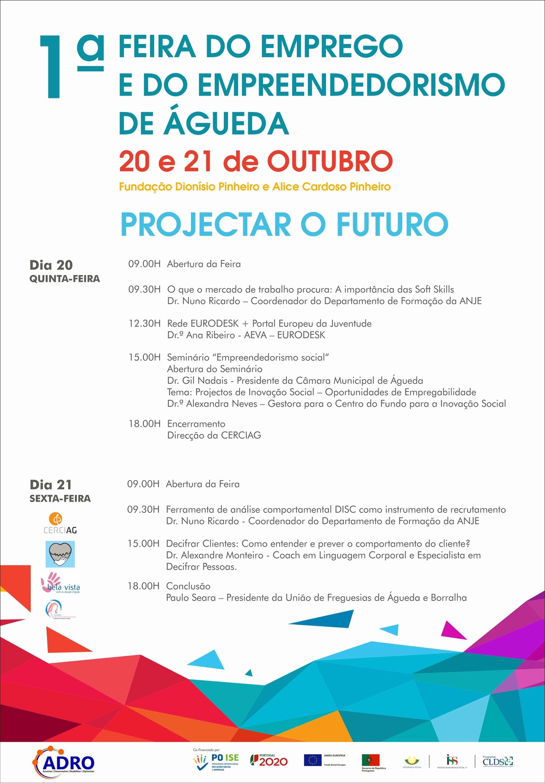 A CERCIAG - Cooperativa de Educação e Reabilitação de Cidadãos com Incapacidades de Águeda, C.R.L., no âmbito da CLDS 3G – Projecto ADRO (Contractos Locais de Desenvolvimento Social), vai organizar a Feira de Emprego e Empreendedorismo de Águeda, a realizar nos próximos dias 20 e 21 de Outubro de 2016, no Museu da Fundação Dionísio Pinheiro e Alice Cardoso Pinheiro, em Águeda, estando a respectiva organização do Evento a cargo da Bestvalor, Lda.