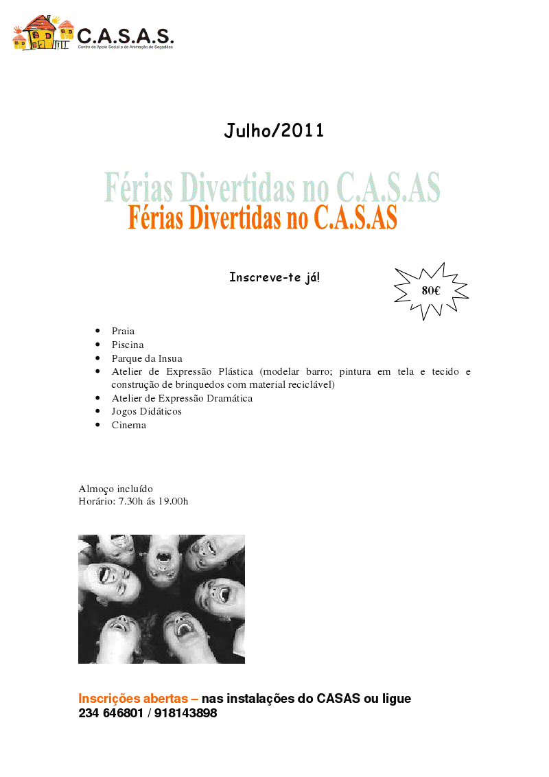 nas instalações do C.A.S.A.S. ou através dos números 234 646 801 / 918 143 898.