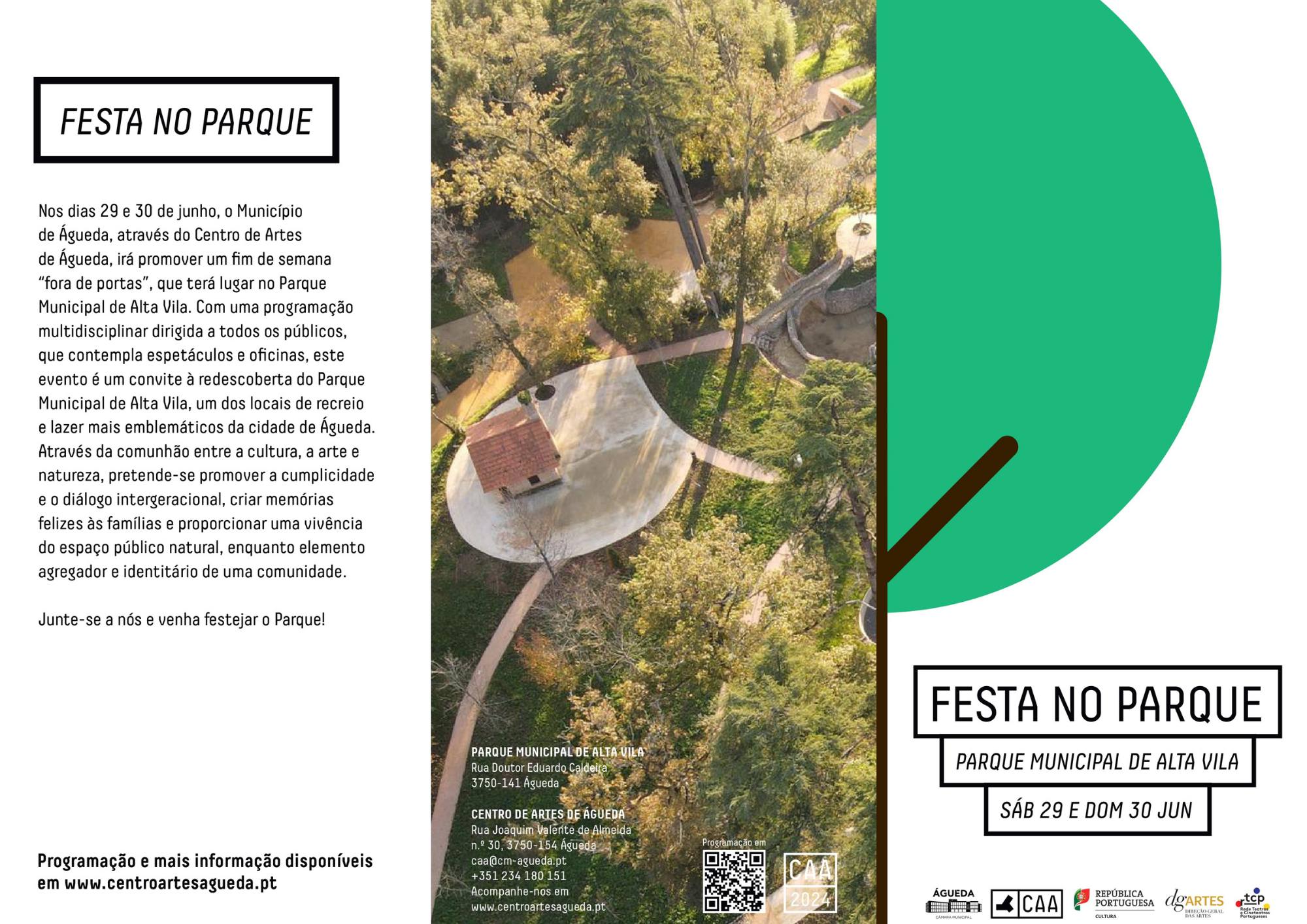 Com uma programação multidisciplinar dirigida a todos os públicos, que contempla espetáculos e oficinas, este evento é um convite à redescoberta do Parque Municipal de Alta Vila, um dos locais de recreio e lazer mais emblemáticos da cidade de Águeda.