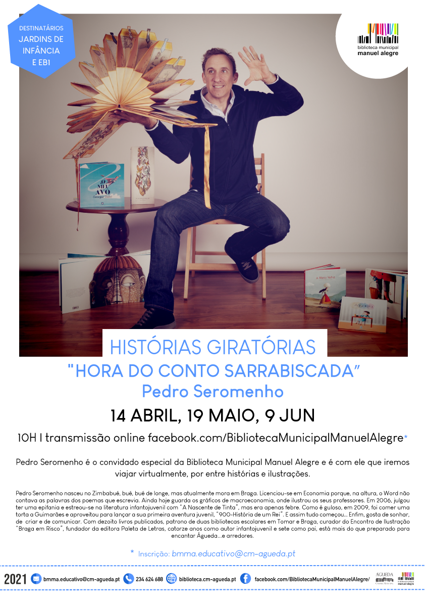 Pedro Seromenho é o convidado especial da Biblioteca Municipal Manuel Alegre. Nesta temporada é com ele que iremos viajar, virtualmente, entre histórias e ilustrações.