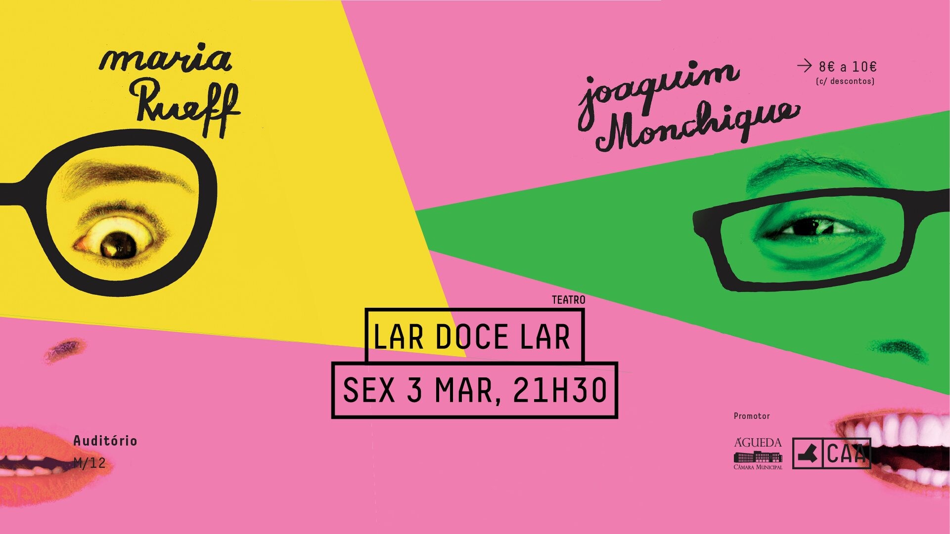 “Lar Doce Lar”, o espetáculo que juntou pela primeira vez em palco Joaquim Monchique e Maria Rueff, está de regresso à estrada! Duas idosas que partilham um quarto na Residência Sénior Antúrios Dourados embarcam numa competição desmedida por um quarto particular após a “partida” da sua anterior ocupante. Com o brilhantismo cómico a que já nos habituaram, Maria Rue¤ e Joaquim Monchique desdobram-se em múltiplas personagens e levam-nos numa viagem atribulada e hilariante pelos quatro cantos deste doce lar. “Lar Doce Lar” estreou originalmente em 2012. Com um texto vibrante, reforçado pela vivacidade e inteligência das interpretações de Rueff e Monchique, alcançou rapidamente um grande sucesso junto do público que se viria a repetir em 2015.