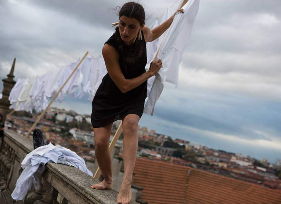 A instalação/performance/memória "LEMBRA-TE DE MIM" é uma exploração do tema actual da transformação dos centros históricos, ligada à experiência pessoal da artista. As memórias de infância, da roupa a secar, pendurada nas ruas, pela romantização do dia-a- dia. A instalação consiste num número de estacas levantadas e interligadas por cordas. Em cada corda estão penduradas camisas, num total de 150, de grupos locais que tecem a rede social da cidade. A imagem da roupa a secar, centro vivo na memória, convida o público para um espaço, quase metafísico, imersível, e de reflexão, de zonas inconscientes da sociedade. A instalação é inspirada pelo dia a dia da cidade e pelas gentes fazem a sua história.