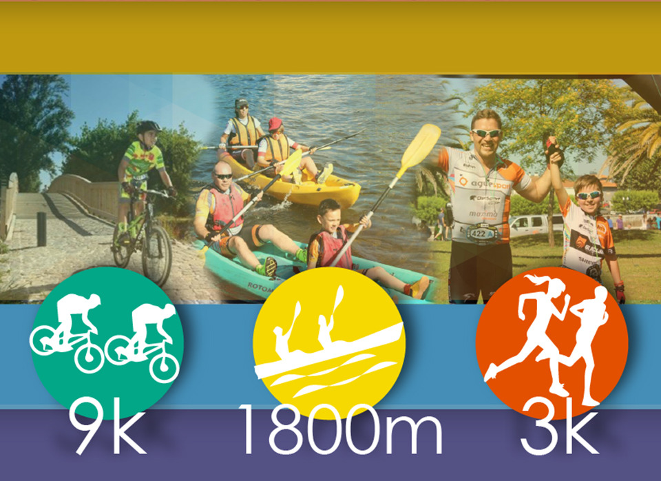 9000m de Bicicleta + 1800m de Kayak + 3000m de Corrida