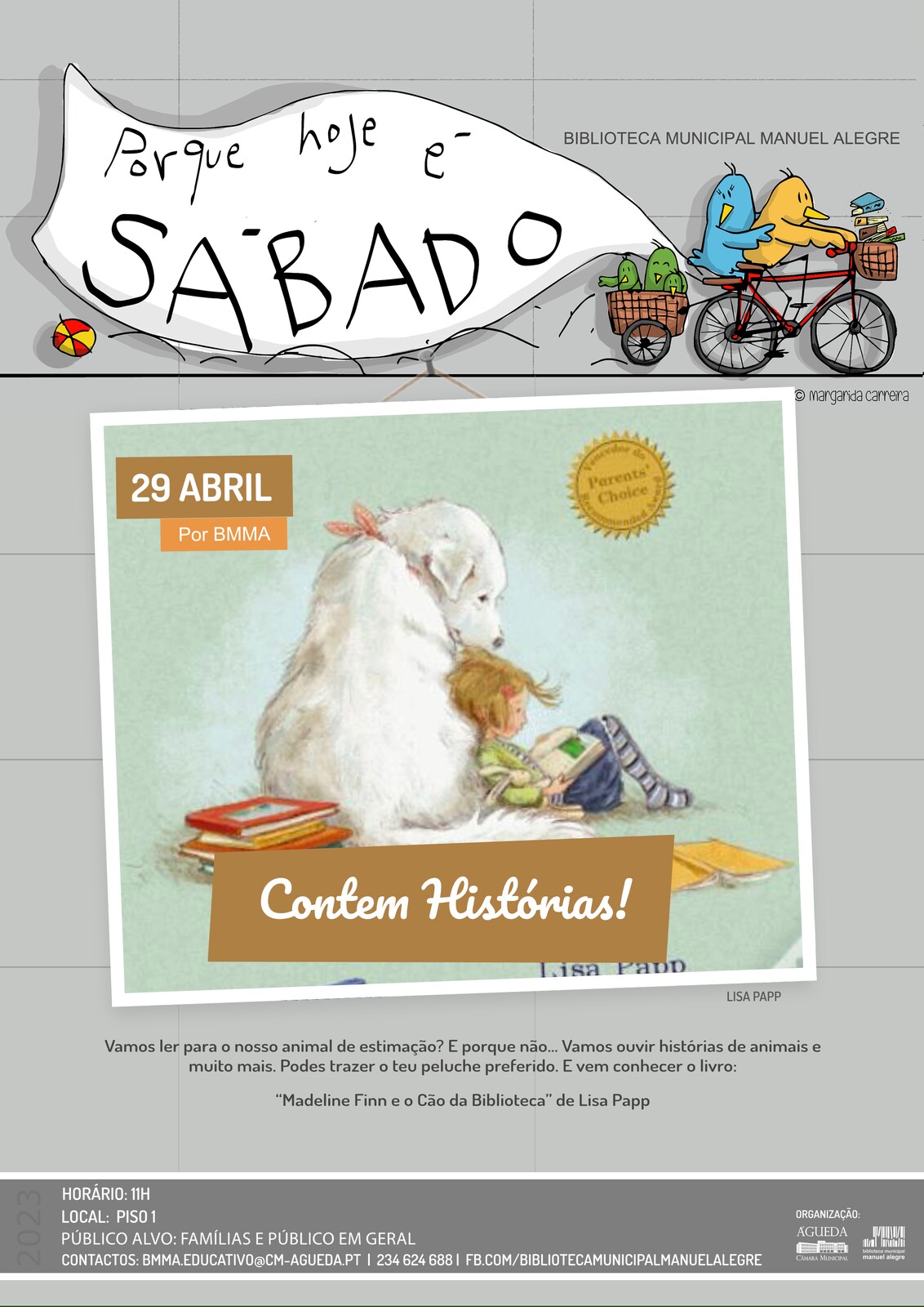 Vamos ler para o nosso animal de estimação? E porque não… Vamos ouvir histórias de animais e muito mais. Podes trazer o teu peluche preferido. E vem conhecer o livro: "Madeline Finn e o cão da Biblioteca" de Lisa Papp