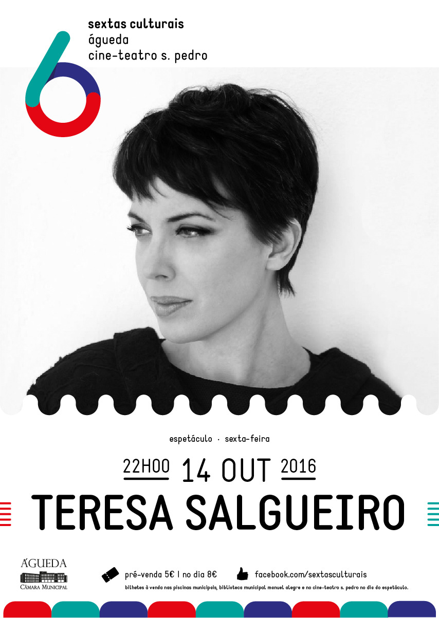 A Cidade de Águeda vai voltar a estar em destaque com a chegada de mais uma edição das Sextas Culturais. A cantora e compositora Teresa Salgueiro sobe ao palco do Cine-Teatro São Pedro, a 14 de outubro, pelas 22 horas.