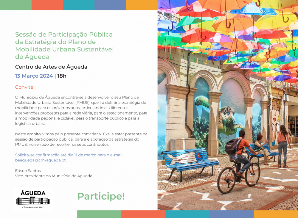 Os interessados devem apresentar os seus contributos, por escrito, para o endereço da autarquia (Praça do Município, 3754 – 500 Águeda) ou para o endereço eletrónico dv-as@cm-agueda.pt, mencionando no assunto “Plano de Mobilidade Urbana Sustentável”, indicando o nome completo, número de identificação fiscal, morada ou sede e endereço eletrónico.