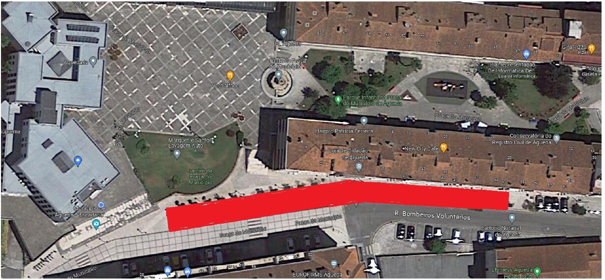 Informamos todos os munícipes que, nos termos do disposto no n.º 1 do artigo 12.º do Decreto – Regulamentar n.º 2-A/2005, de 24 de março, que regula a “utilização das vias públicas para a realização de atividades de caráter cultural, festivo ou outras que possam afetar o trânsito normal”, por motivo da realização do programa televisivo “Aqui Portugal” no dia 23 de julho, haverá interdição ao estacionamento automóvel na Rua dos Bombeiros Voluntários, das 17h00 de sexta-feira (dia 21 de julho) até às 23h00 de domingo (dia 23 de julho), nomeadamente no local assinalado no imagem abaixo.