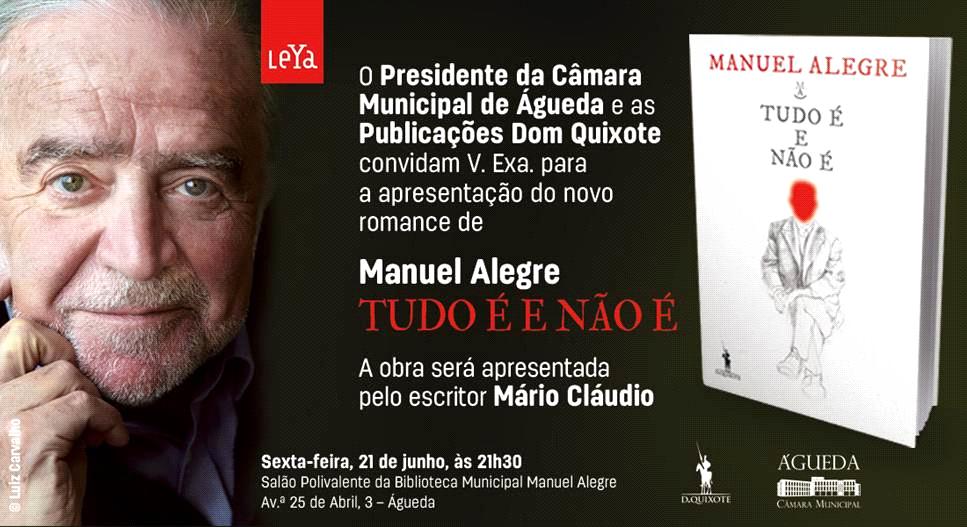O Presidente da Câmara Municipal de Águeda e as Publicações Dom Quixote convidam Vossa Excelência para a apresentação do novo romance de Manuel Alegre TUDO É E NÃO É.