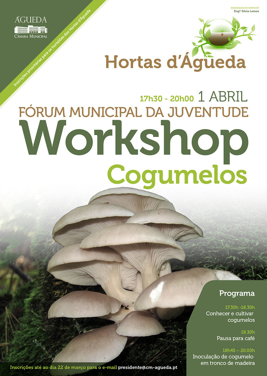 No âmbito do projeto das “Hortas d'Águeda”, a Câmara Municipal vai realizar a segunda edição do workshop relativo ao tema “Produção de Cogumelos em Casa”, dinamizado pela AGIM - Associação para os Pequenos Frutos e Inovação Empresarial.