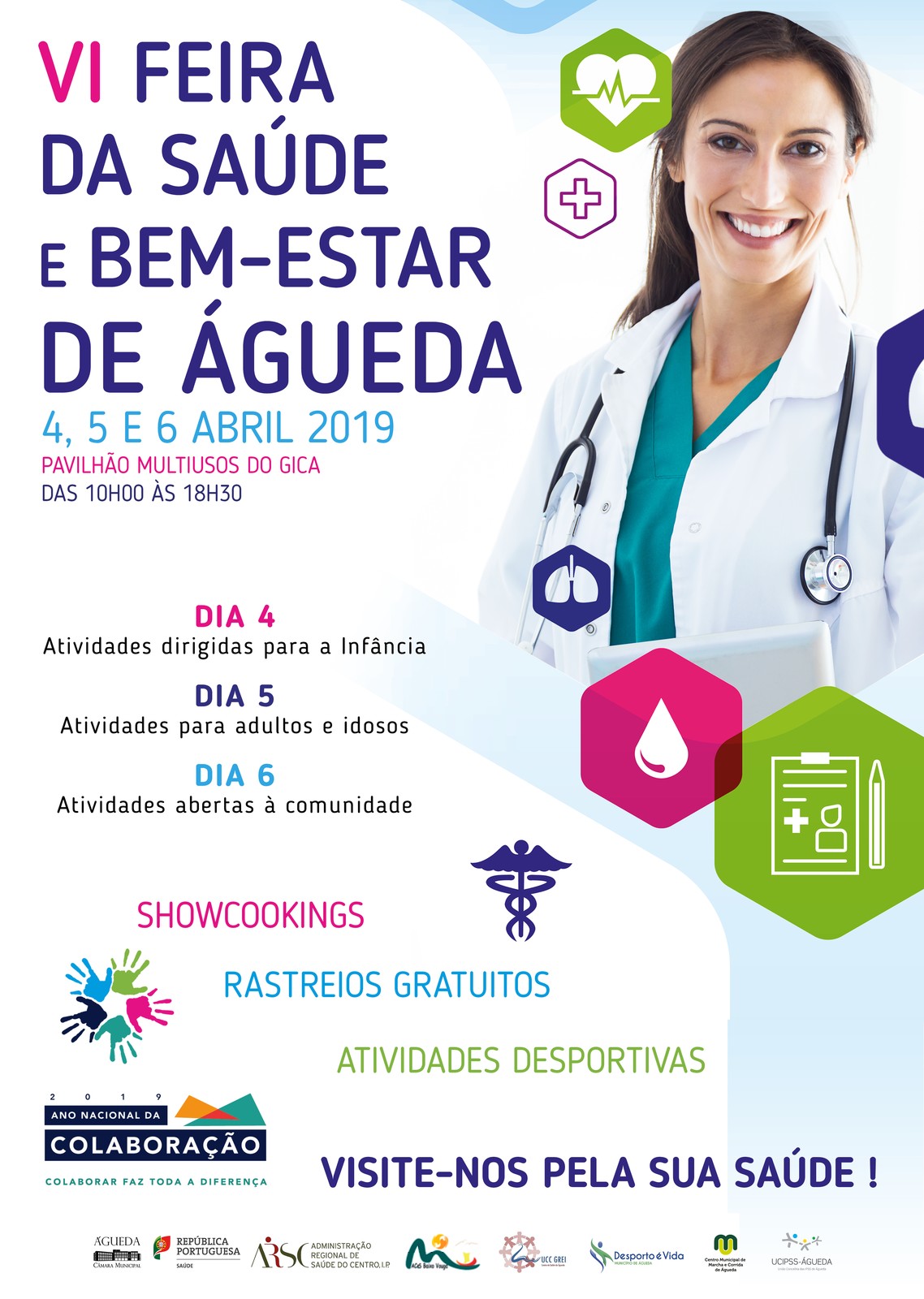 A 6ª edição da Feira da Saúde e Bem Estar, certame que é organizado e promovido pela Câmara Municipal de Águeda, Centro de Saúde de Águeda, e este ano pela primeira vez em parceria com a UCIPSS – União Concelhia das Instituições de Solidariedade Social de Águeda, irá realizar-se nos dias 4, 5 e 6 de abril no Pavilhão Multiusos do GICA.