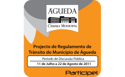 Na reunião extraordinária de executivo de 28 de Junho de 2011, foi aprovado por unanimidade a abertura do período de discussão pública, por um período de 30 dias úteis, do Projecto de Regulamento de Trânsito do Município de Águeda, de modo a receber os contributos dos Aguedenses – empresas, associações e pessoas em nome individual.