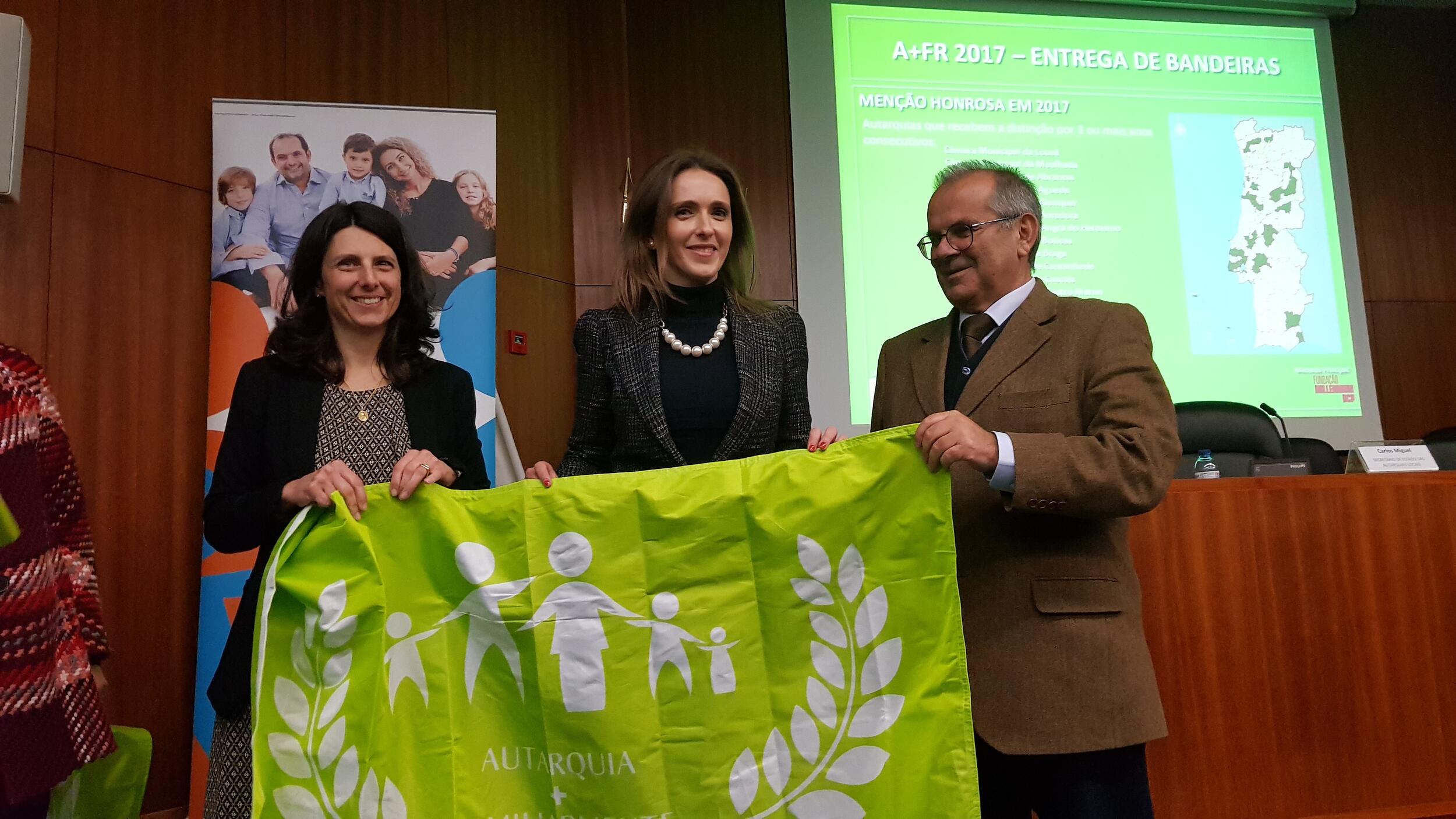 Fruto desta distinção, aquele observatório atribuiu a bandeira a 61 municípios, num universo de 115 candidaturas, tendo a Vereadora da Ação Social, Elsa Corga, recebido a bandeira verde de “Autarquia + Familiarmente Responsável 2017” no dia 29 de novembro, numa cerimónia que decorreu na Fundação CEFA, em Coimbra.