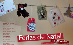 As “Férias de Natal” são dirigidas a crianças e jovens entre os 6 e os 12 anos de idade, que compreendem várias actividades que prometem muita diversão e ocupação para os dias 20, 21, 22, 27, 28, e 29 de Dezembro, das 10:00 às 12:30.