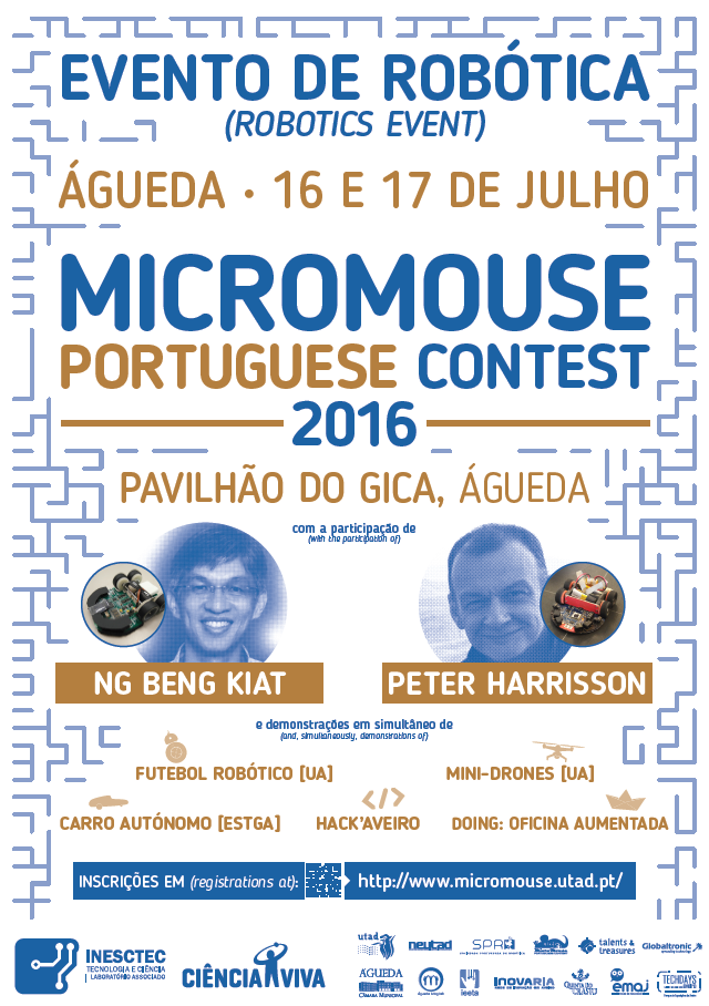 Decorre nos dias 16 e 17 de julho, no Pavilhão do Ginásio Clube de Águeda (GiCA), o evento Micromouse Portuguese Contest 2016 e, em simultâneo, exposições, demonstrações e conferências na área da robótica.