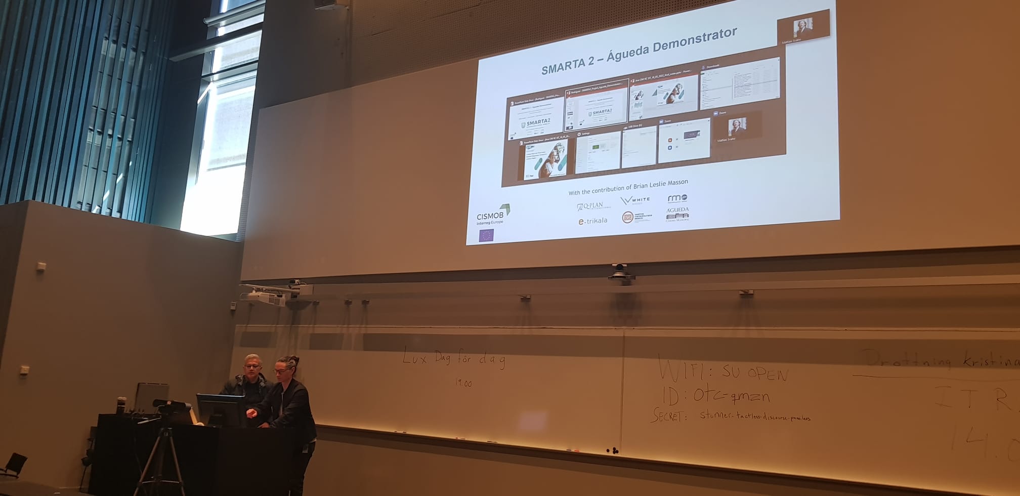 Edson Santos, Vice-Presidente da Câmara Municipal, e Carlos Rodrigues, da Divisão de Modernização Administrativa, Financiamentos e Parcerias, apresentaram o trabalho realizado em Águeda no âmbito do SMARTA2, um projeto que se traduziu na aplicação de medidas de mobilidade partilhada sustentável, interligada ao transporte público em zonas rurais. Em concreto, foi demonstrado o alargamento das beÁgueda – Bicicletas Elétricas de Águeda às freguesias que são servidas pela Linha do Vouga.