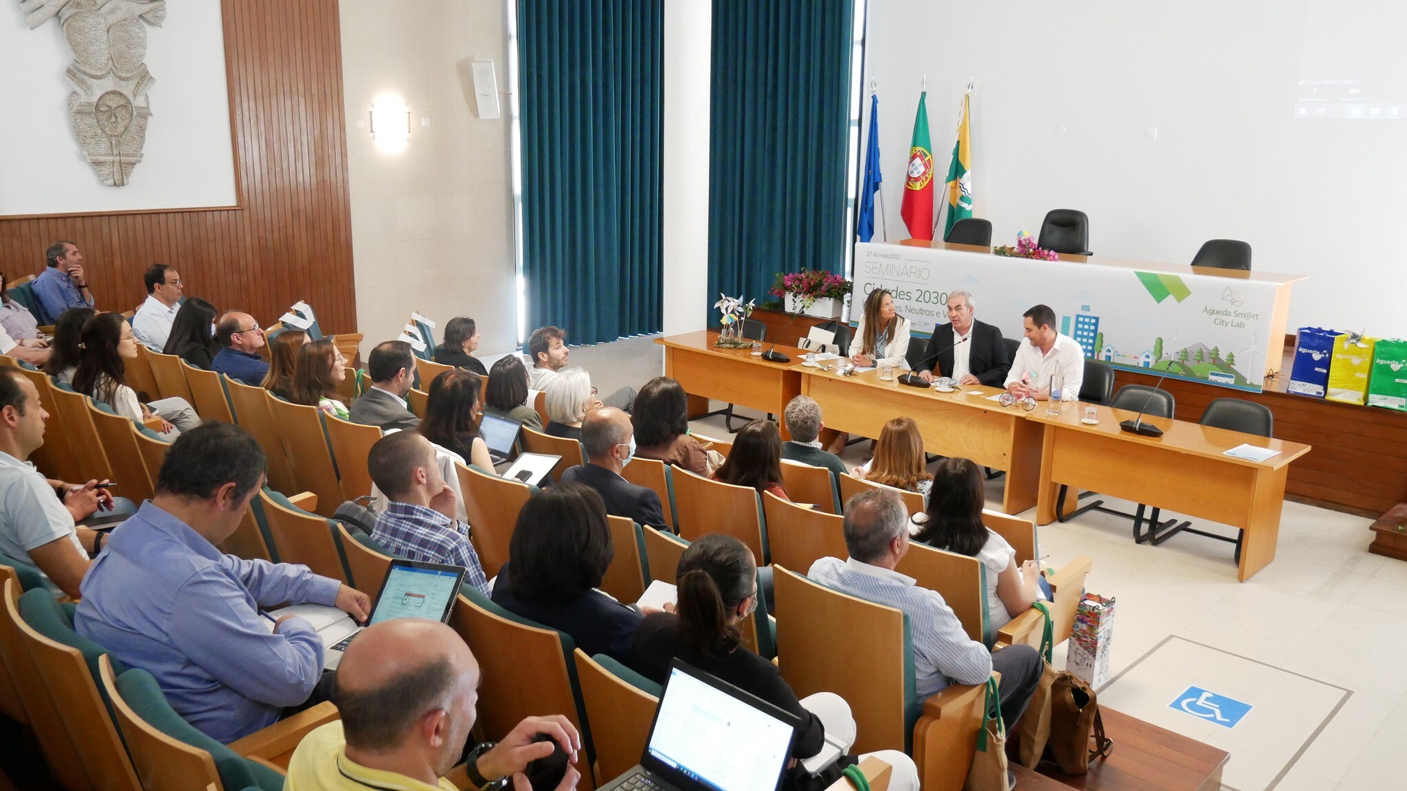 A Câmara Municipal de Águeda promoveu, na sexta-feira (27 de maio), o seminário “Cidades 2030: Inteligentes, Neutras e Verdes”, onde vários especialistas e responsáveis nacionais da área ambiental e de gestão de fundos comunitários, destacaram o contributo de Águeda na implementação de medidas que promovem a descarbonização das cidades e partilharam boas práticas para a construção de cidades ambientalmente sustentáveis e inteligentes.