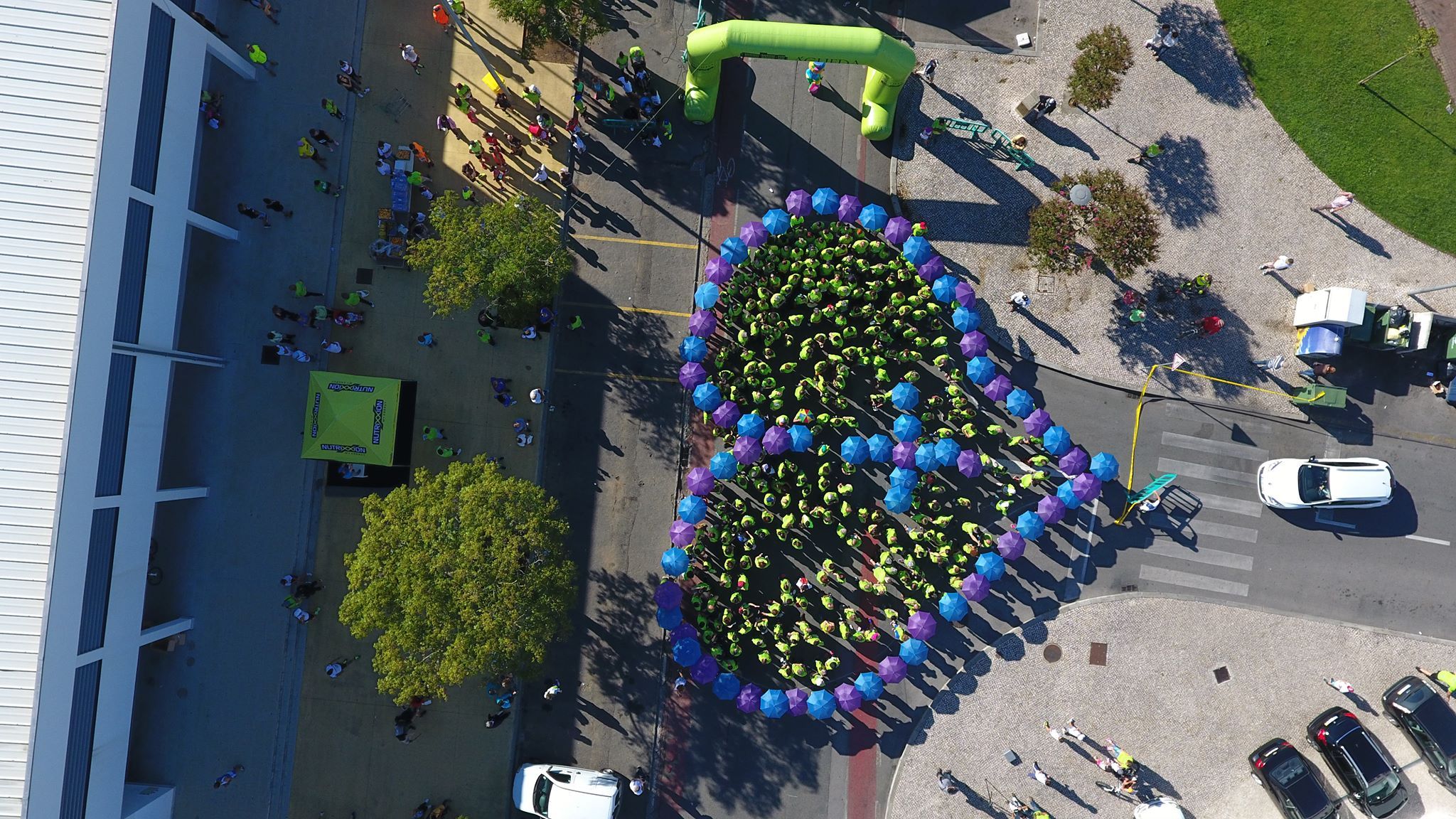 Nesta caminhada/corrida solidária, registo para a participação de uma centena de crianças na prova do "pequeno solidário +" e também para a realização do 1º logótipo humano deste projeto.