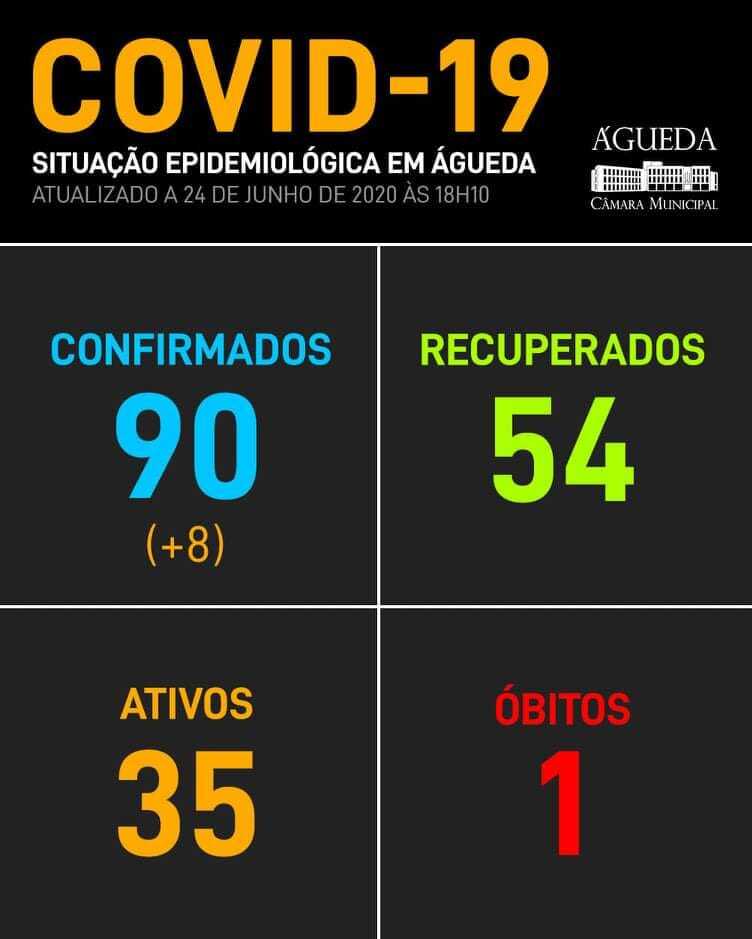 Águeda regista, hoje, 90 casos positivos de COVID-19 (mais oito relativamente a segunda feira). Entre estes contabilizam-se 54 pessoas recuperadas e um óbito, pelo que estão ativos 35 casos no concelho.