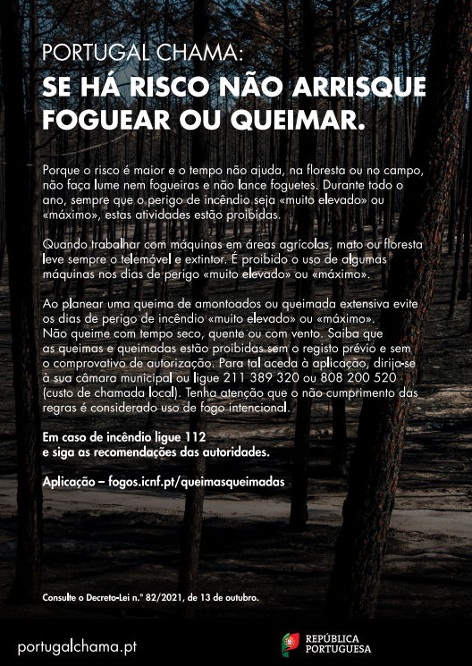 Portugal chama. Risco de incêndio Máximo!Evite comportamentos de risco.Proteja-se a si e aos outros
