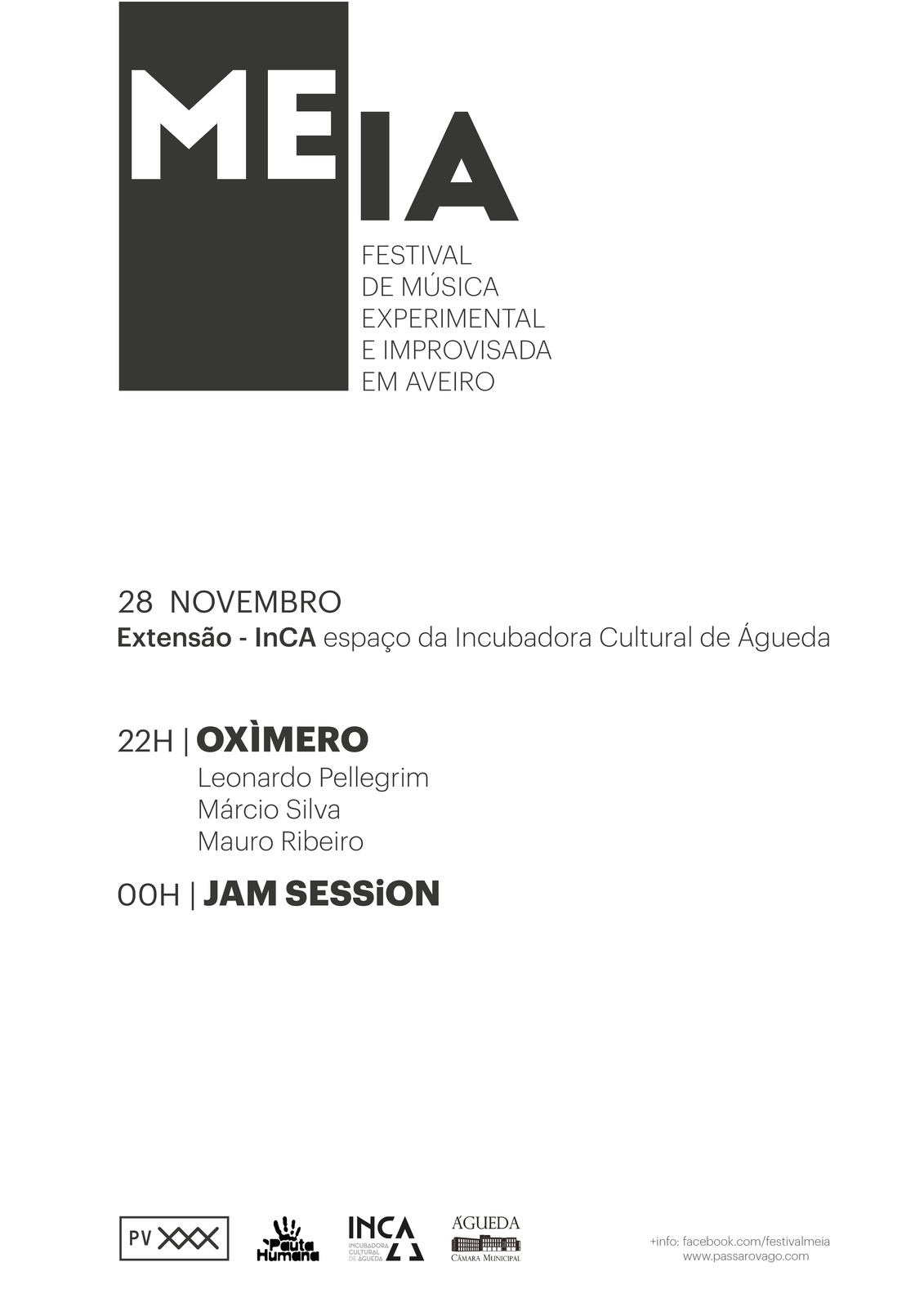 O MEIA, Festival de Música Experimental e Improvisada em Aveiro, é organização do colectivo e editora de música aguedense Pássaro Vago com a parceria da associação cultural Pauta Humana, surgiu da vontade de criar um festa anual de amostra de música experimental e improvisada em Aveiro.