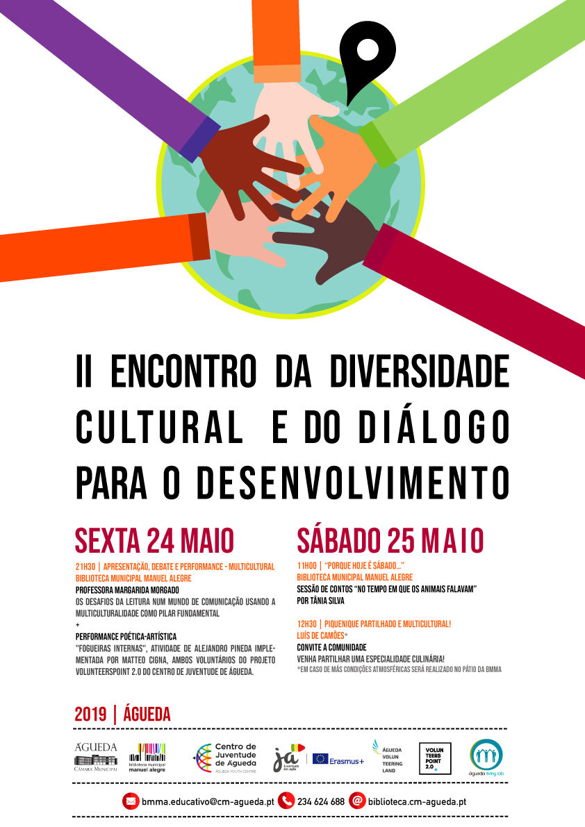 A Câmara Municipal de Águeda, através da Biblioteca Municipal Manuel Alegre, do Centro de Juventude de Águeda e o Águeda Living Lab, promove o II Encontro da Diversidade Cultural e do Diálogo para o desenvolvimento, nos dias 24 e 25 de maio 2019.
