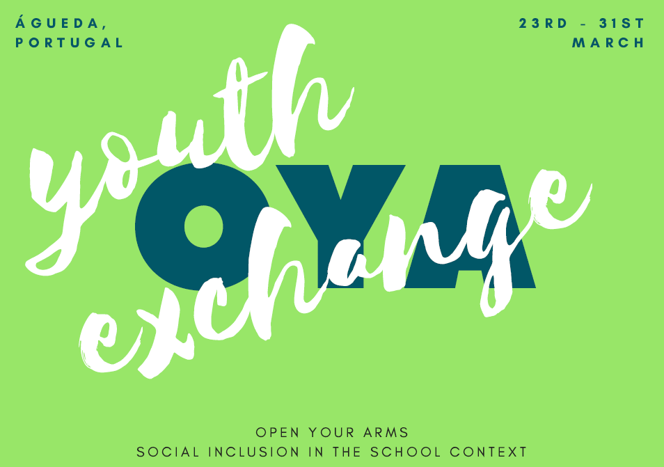 Entre 23 e 31 de março decorreu o intercâmbio Open Your Arms (OYA) em Águeda que juntou 36 jovens de Portugal, Espanha e Itália com idades entre os 14 e os 18 anos. Este intercâmbio, apoiado pela Agência Nacional Erasmus+ Juventude em Ação, foi promovido pelo Centro de Juventude de Águeda.