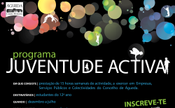 À semelhança das edições anteriores, a Autarquia de Águeda pretende com o Programa Juventude Activa dar a oportunidade aos jovens de ocuparem o seu tempo livre, proporcionando ao mesmo tempo um contacto prévio com o mundo laboral de forma a contribuir positivamente nas suas decisões profissionais futuras.
