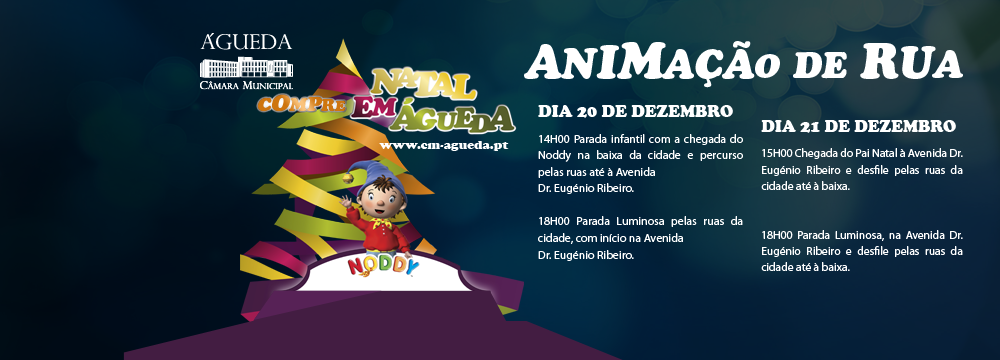 14 horas: Parada infantil com a chegada do Noddy na baixa da cidade e percurso pelas ruas até à avenida Dr. Eugénio Ribeiro.