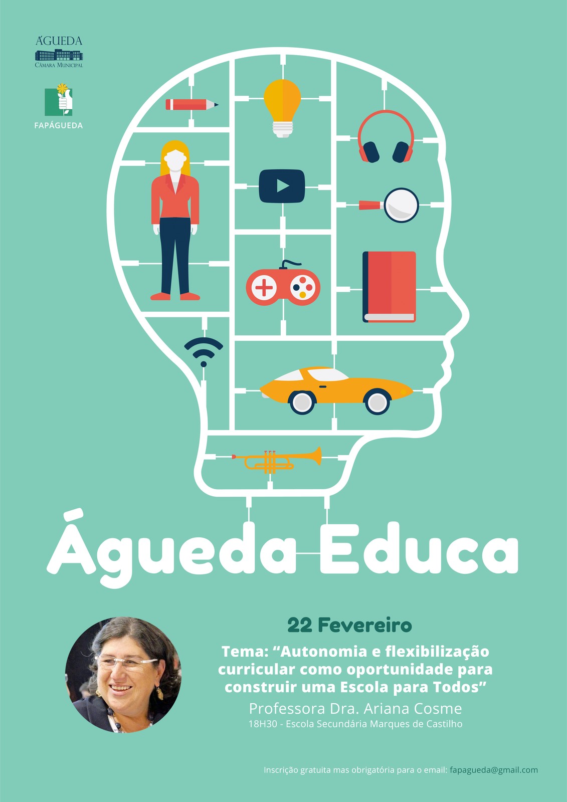 No próximo dia 22 de fevereiro (sexta feira), às 18:30 horas, na Escola Secundária Marques de Castilho, irá realizar-se mais uma sessão no âmbito do Projeto Águeda Educa.