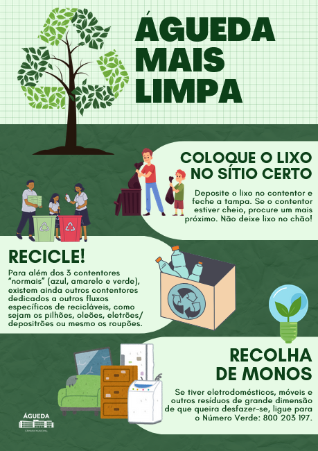 O Município de Águeda apela ainda à colaboração de todos os cidadãos como agentes de vigilância do espaço público, sinalizando situações de deposição indevida de resíduos e contribuindo para a preservação da limpeza, do ambiente e da qualidade de vida no concelho.