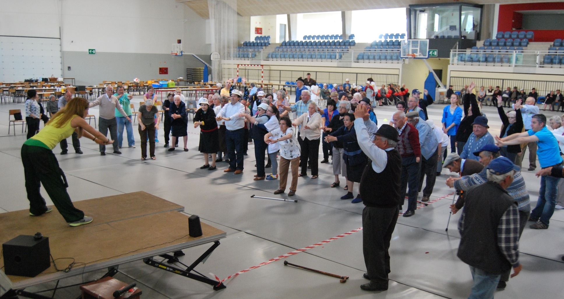 As atividades tiveram início com exercícios de aquecimento com música, seguidos de jogos com acompanhamento de monitores. Depois do almoço, da parte da tarde houve tempo para “fazer o gosto ao pé” com danças populares acompanhadas por animador.