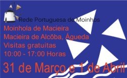 Nos dias 30, 31 de Março e 1 de Abril, sexta-feira e fim-de-semana, no âmbito do Dia Nacional dos Moinhos que se assinala a 7 de Abril, terá lugar pelo sexto ano consecutivo o Dia dos Moinhos Abertos de Portugal, iniciativa organizada pela Rede Portuguesa de Moinhos, com o apoio da TIMS, Sociedade Internacional de Molinologia.