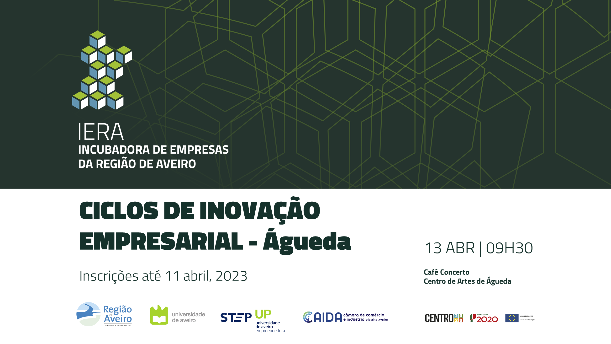 Os Ciclos de Inovação Empresarial, iniciativa no âmbito do projeto INOV@IERA de apoio ao empreendedorismo na Região de Aveiro, é dinamizado pela UA, em parceria com a Comunidade Intermunicipal da Região de Aveiro e a Associação Industrial do Distrito de Aveiro. O projeto é cofinanciado pelo CENTRO 2020 e Portugal 2020, através do Fundo Social Europeu.