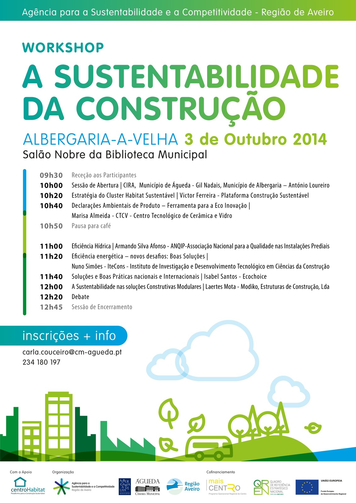 Organizado pelo projeto da Agência para a Sustentabilidade e a Competitividade, o próximo workshop dedicado à construção sustentável, decorrerá no próximo dia 3 de outubro de 2014, no Salão Nobre da Biblioteca Municipal de Albergaria-a-Velha