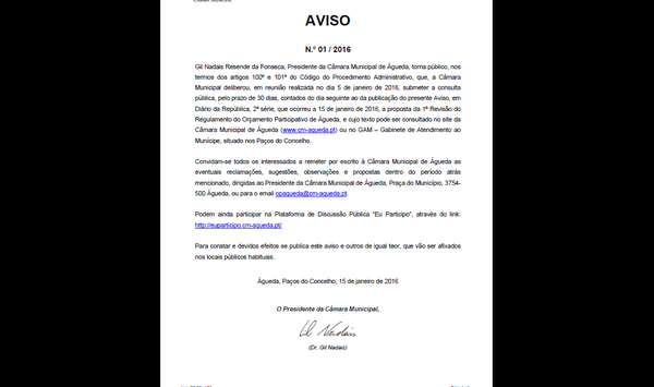 Até 14 de fevereiro :: Consulta Pública do Orçamento Participativo de Águeda